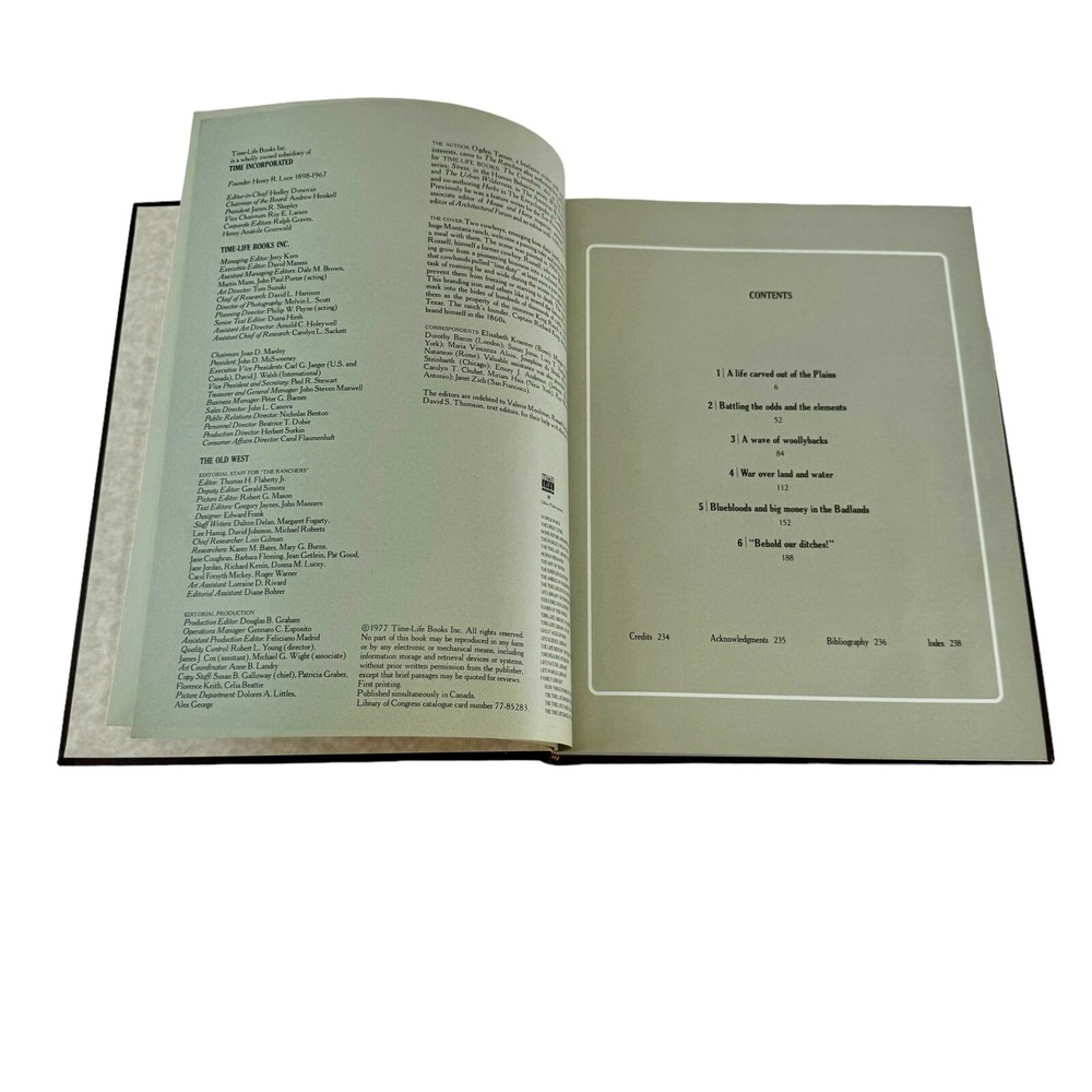 The Ranchers by Time-Life Books Old West Series 1977 Faux Leather Hardcover. For sale is this beautifully illustrated vintage book on Ranching in the Time-Life Old West Series. Stories of the old west with beautiful full page photos and artwork. The condition is very good. Please take a look at my photos for information on content and condition.