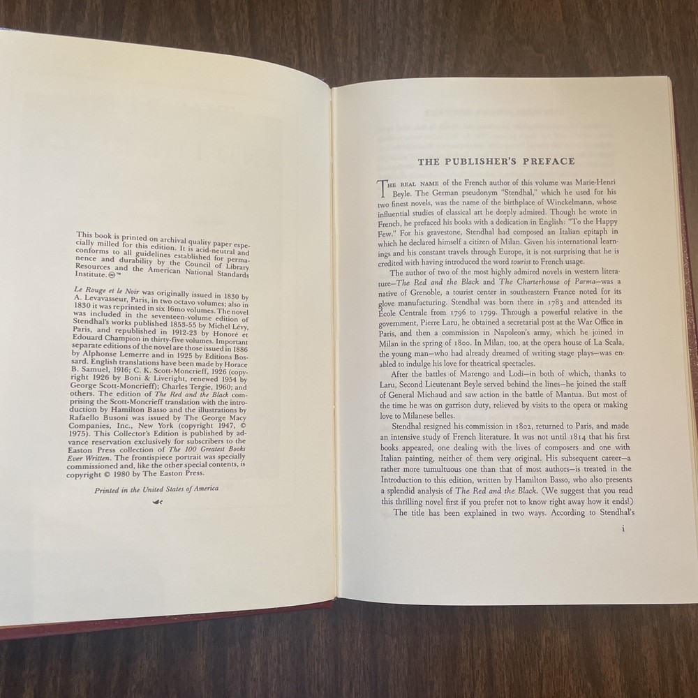 The Red and the Black By Stendahl (Easton Press, 1980) Leather Bound. Shipped with USPS Media Mail.
