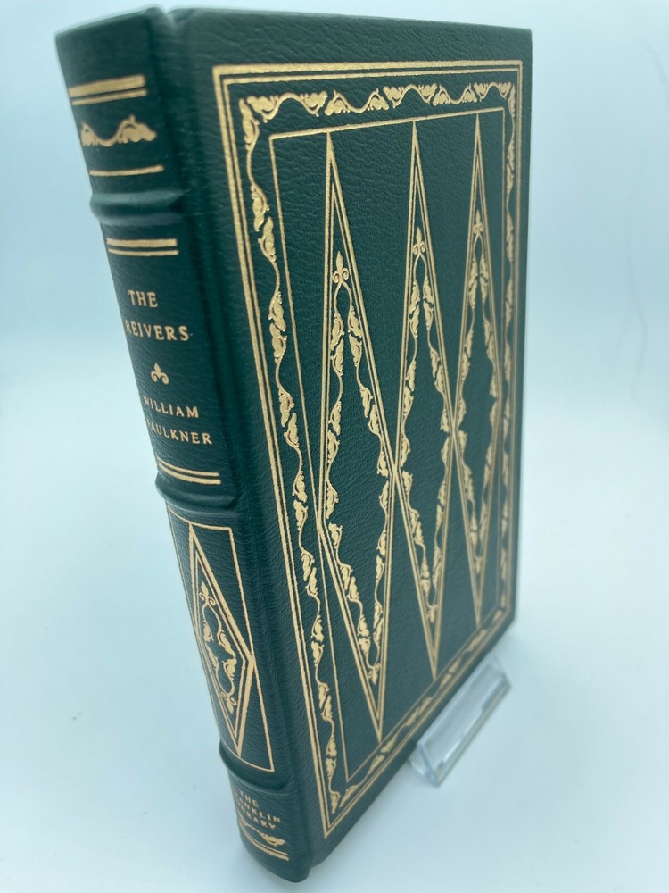 The Reivers by William Faulkner published by Franklin Library (1979) is a leather bound book with gold-lined pages. This book has a fabric lined inside cover with a satin ribbon bookmark. The book is ...