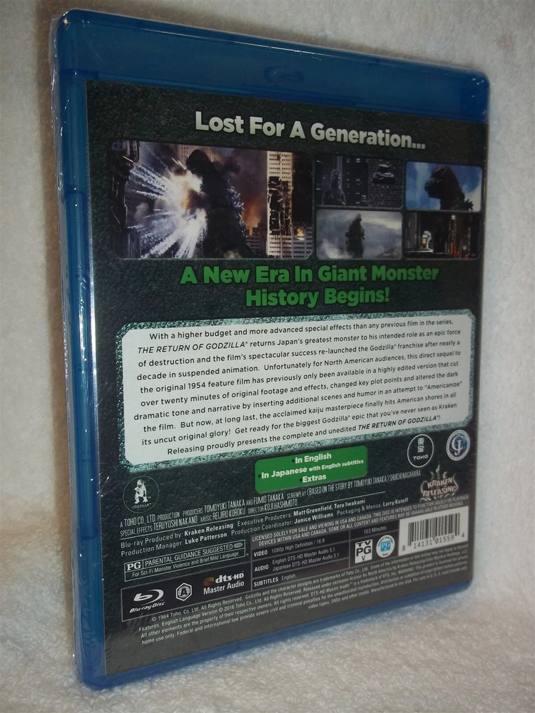 PLEASE READ BELOW BEFORE BIDDING AND ASKING ANY QUESTIONS ITEM DESCRIPTION This BLURAY is previously viewed but in EXCELLENT condition. The disc(s) is LIKE NEW. It includes all the original cases, covers, inserts and, of course, the disc(s) itself. From the manufacturer The Return of Godzilla 30 years after his original attack on Tokyo Godzilla is back. A reporter investigates the disappearance of a ship. He finds the ship and discovers that all the hands have been killed by a giant sea louse except for one. He then tells the reporter that the ship was attacked by Godzilla (Gojira). Fearing a panic, the Japanese government then takes the survivor into custody to keep him from revealing that Godzilla has returned. However, a Soviet nuclear submarine is destroyed and the situation puts them and the United States on the brink of nuclear war, until the Japanese decide to come clean and admit that it was Godzilla. Soon the Japan and the rest of the world are on red alert as they wait for Godzilla to begin his rampage anew. OUR TERMS AND GUARANTEES We will contact the auction winner(s) via email within 24 hours of auction close with any specific instructions that may be necessary to complete the transaction. We will also notify the auction winner(s) when their order has been shipped by sending an email to their ebay email address. WE DO NOT SELL illegal bootleg tapes, copies, screeners, or any type of illegally burned CDs/DVDs! ALL ITEMS ARE FACTORY ORIGINALS and, unless otherwise noted, include their ORIGINAL US factory made cases, inserts/game book and, of course, the items themselves. All DVDs are GUARANTEED. If you receive a damaged, defective or otherwise unusable item from us, please inform us within 15 days of shipment and we will replace the defective product. In the event that the defective item is no longer available, we will substitute for another item, credit your account or issue a refund minus the Shipping. Buyer must make contact within 3 days of the end of auction and payment must be made within 10 days of the end of auction. Please have funds ready to send when you are bidding. Your personal information will never be shared or sold to anyone. Your transaction is strictly confidential, and you will receive your product in discreet packaging . Finally, there should NEVER be a reason to leave us negative feedback. That is NOT the proper way to get our help with a problem, just contact us and give us a chance to provide an appropriate solution. Permanently hurting our reputation by leaving us negative feedback or threatening negative feedback will NOT get you the service you are looking for, again, just email us if you have a problem with your purchase. PAYMENT TERMS Payment is expected within 10 days after the auction closes. Please include the following with your payment: Username Auction number(s) Item name Shipping Address We accept the following forms of payment: . PAYPAL Credit Cards (Contact us for details) SHIPPING TERMS Your DVD(s) will be shipped within 48 hours of receipt of payment. All DVDs will be shipped discreetly . The flat rate shipping fee using USPS FIRST CLASS MAIL is $ 3.00 for the 1st DVD, $2.00 for each additional within the USA . International orders, INCLUDING CANADA, using USPS AIRMAIL are $20.00 for the first DVD, $5 for each additional. Rush and Expedited shipping options are available to most areas; please feel free to contact us for pricing and other details regarding the auction. I COMBINE SHIPPING Please View Our Other Auctions And Save On Shipping Powered by SixBit's eCommerce Solution