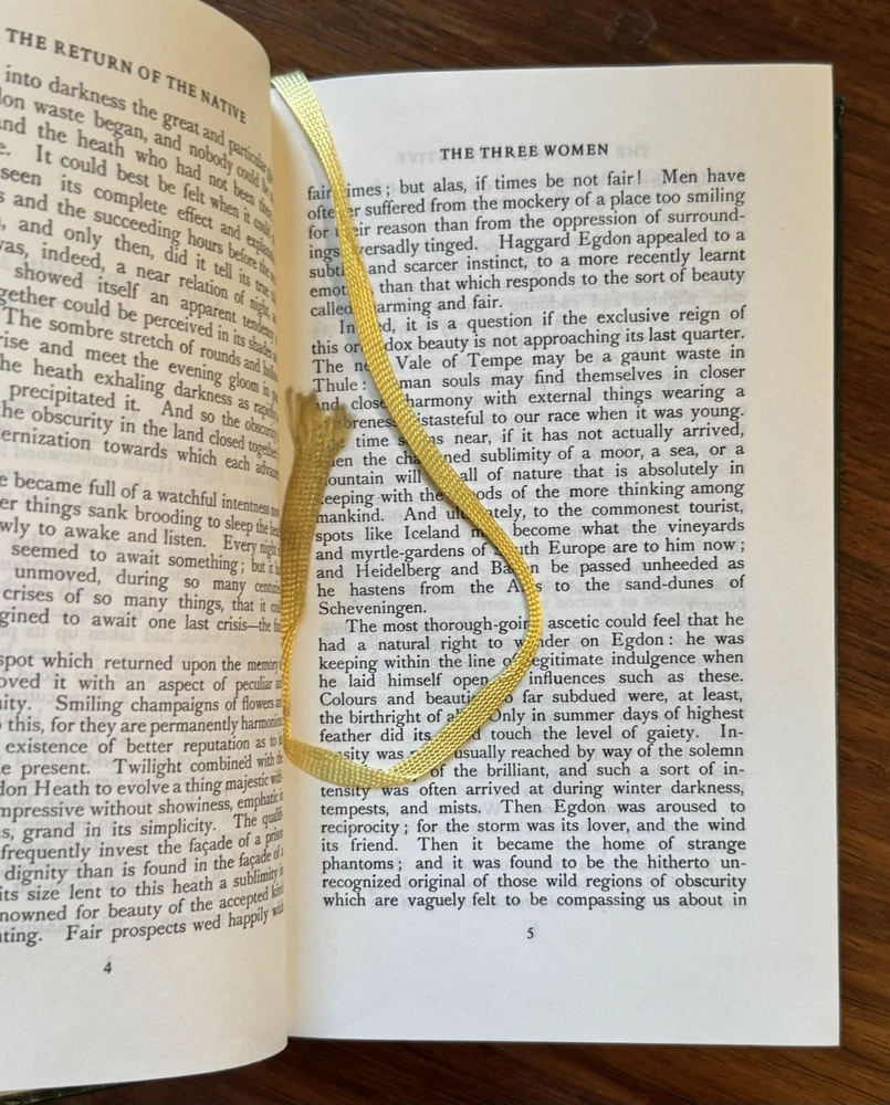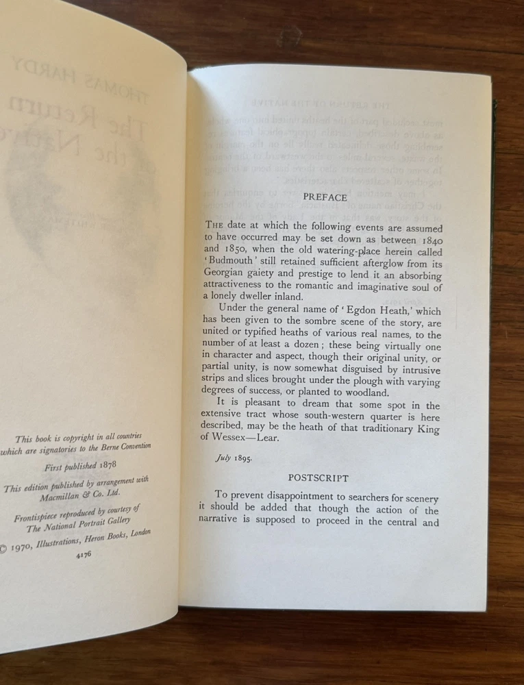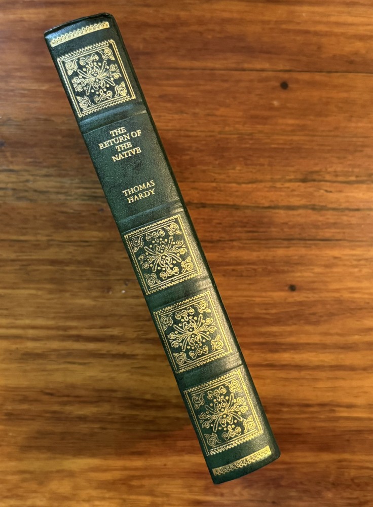 The Return Of The Native • Thomas Brady #4176 Leather Illustrated Book 1970 London is a limited edition book with a numbered copy. This book is bound in leather and illustrated by Peter Whiteman. A classic and collectible. The novel is set on Egdon Heath, a fictional barren moor in Wessex in southwestern England. The native of the title is Clym Yeobright, who has returned to the area to become a schoolmaster after a successful but, in his opinion, shallow career as a jeweler in Paris. He and his cousin Thomasin exemplify the traditional way of life, while Thomasin’s husband, Damon Wildeve, and Clym’s wife, Eustacia Vye, long for the excitement of city life. Disappointed that Clym is content to remain on the heath, Eustacia, willful and passionate, rekindles her affair with the reckless Damon. After a series of coincidences, Eustacia comes to believe that she is responsible for the death of Clym’s mother. Convinced that fate has doomed her to cause others pain, Eustacia flees and is drowned (by accident or intent). Damon drowns trying to save her. In a later edition, to please his readers, Hardy made additions to his novel. Thomasin marries Diggory Venn, a humble longtime suitor, and Clym becomes an itinerant preacher. Portrait of young thinking bearded man student with stack of books on the table before bookshelves in the library