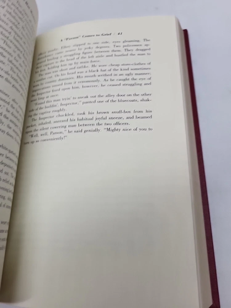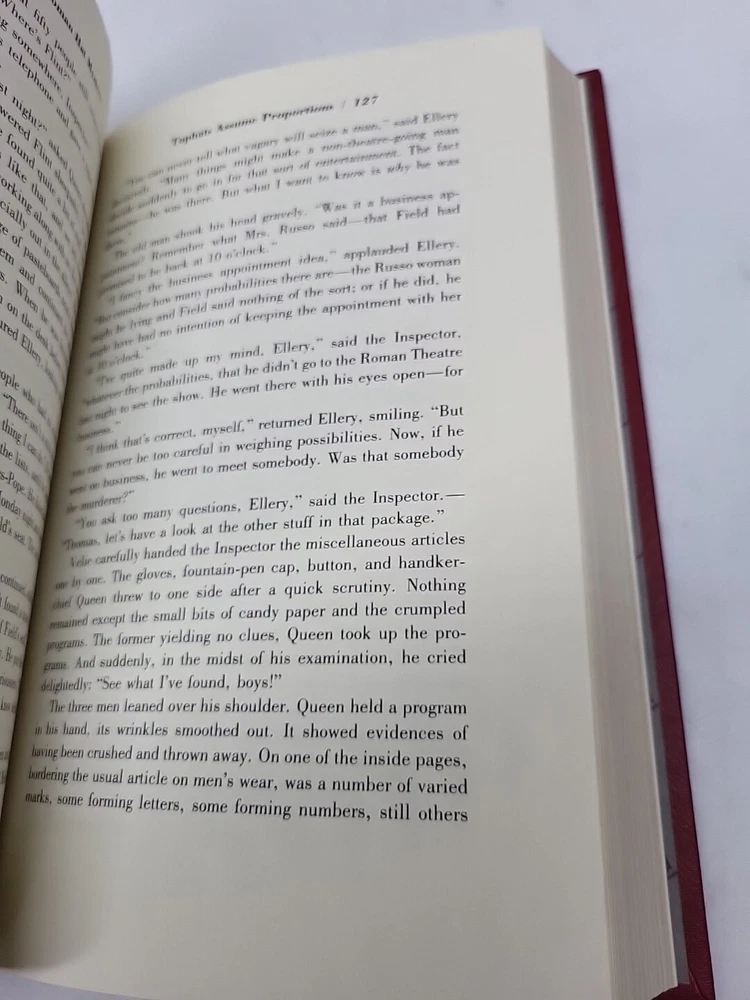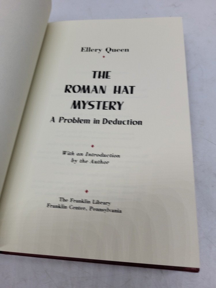 Immerse yourself in the captivating world of mystery and suspense with "The Roman Hat Mystery" by Ellery Queen. This collector's edition book, published by Franklin Library in 1989, is a must-have for any book enthusiast. The leather-bound book features an original illustration by Norman Walker and is printed in English. The book is set in Pennsylvania and follows the story of Ellery Queen, a renowned author, and his involvement in a thrilling mystery. This antiquarian and collectible book is perfect for anyone interested in literature and fiction, and its special attributes make it a valuable addition to any collection. Get your hands on this rare gem today!