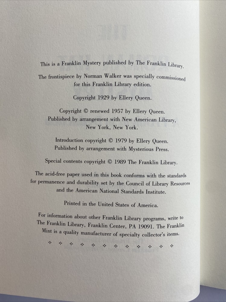 The Roman Hat Mystery by Ellery Queen (Franklin Mystery, Leather-Bound, 1989)b45. See photos for condition...
