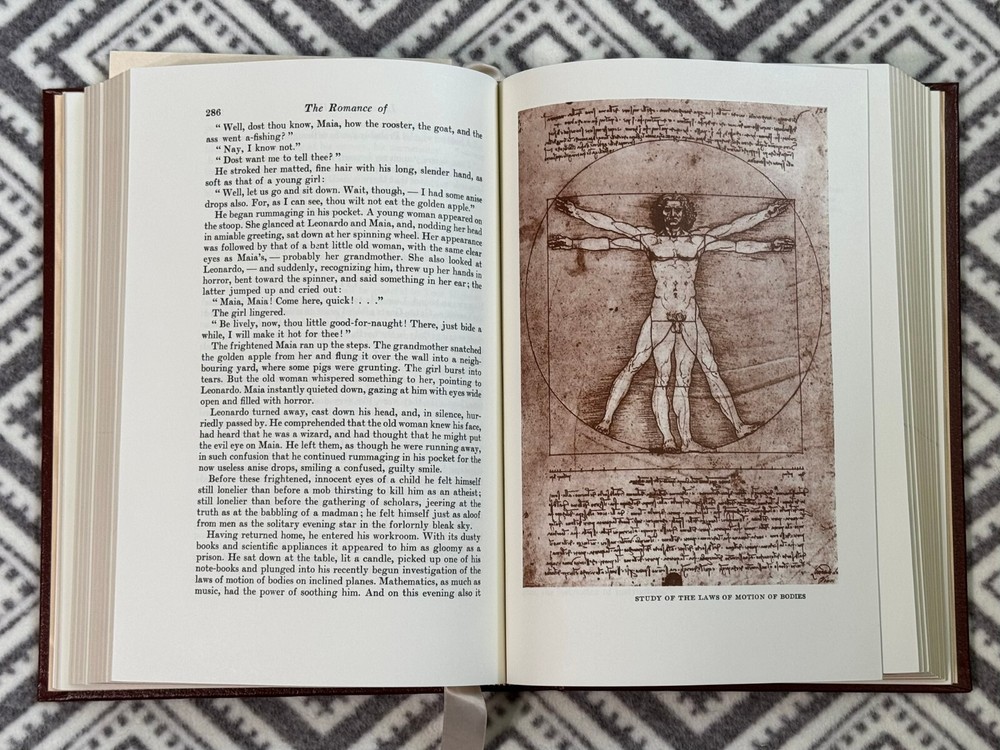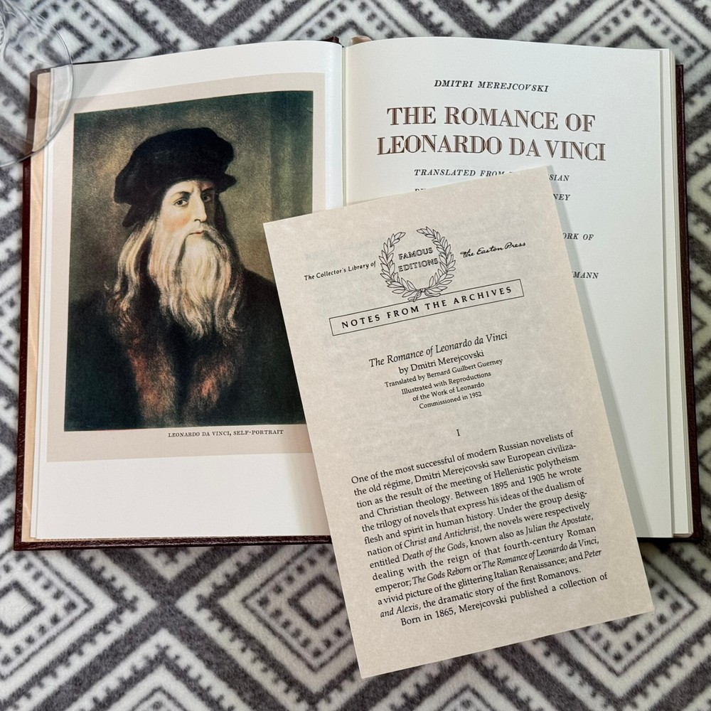 Easton Press Famous Edition Series - The Romance of Leonardo Di Vinci by Dmitry Merezhkovsky. Standard Easton Press book; leather-bound with 22kt gold accents, acid neutral paper, satin-ribbon page marker and sewn pages. No nameplates attached or unattached. Photos are of actual book. If you see other books or items in my store that you would like to purchase, I can combine shipping to save cost. Message me for details.