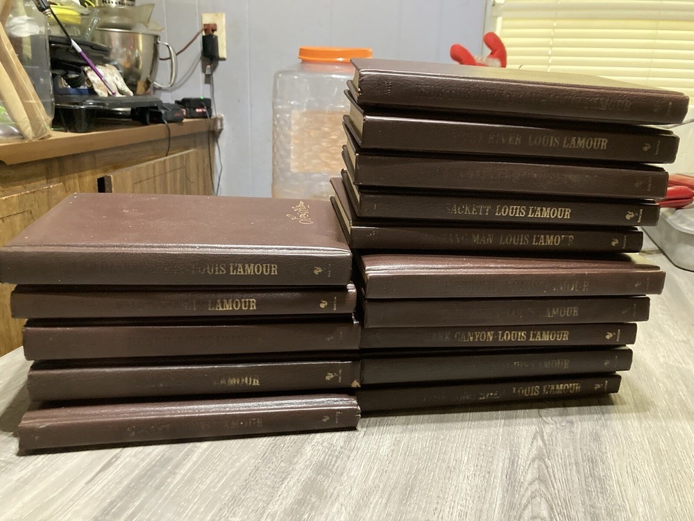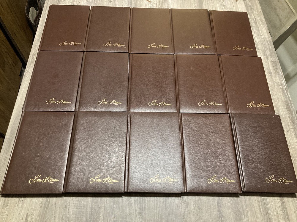 This vintage Louis L'Amour leatherette set is a treasure for collectors—the hardcovers have aged with character, but the pages remain crisp and sturdy. It's clear these books were cherished yet lightly handled, making them a rare find. The collection includes classics like *Hondo* and *The Daybreakers*, perfect for fans of authentic Western adventure. Such a solid set from the '80s is hard to come by!
