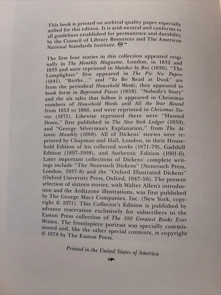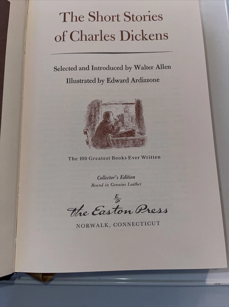 The Short Stories of Charles Dickens, 100 Greatest books Series, Easton Press COLLECTOR EDITION, COVER: GENUINE LEATHER AND GOLD ILLUSTRATED PRINTED ON SPECIAL ARCHIVAL PAPER