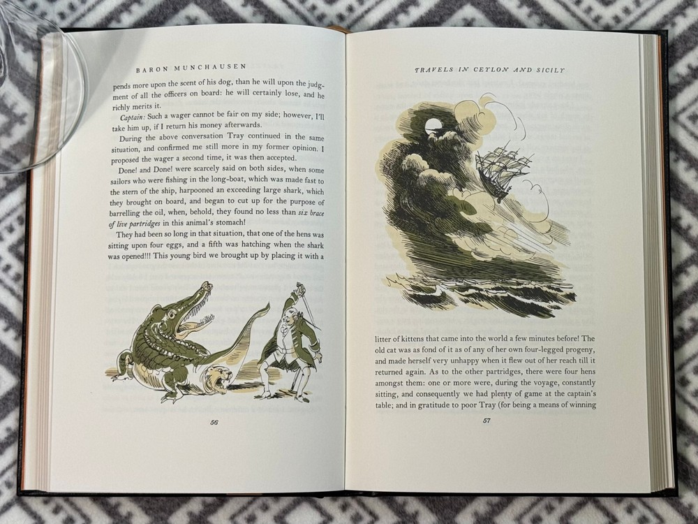 Easton Press Famous Edition Series - The Singular Adventures of Baron Munchausen by Rudolphe Erich Raspe. Standard Easton Press book; leather-bound with 22kt gold accents, acid neutral paper, satin-ribbon page marker and sewn pages. No nameplates attached or unattached. Photos are of actual book. If you see other books or items in my store that you would like to purchase, I can combine shipping to save cost. Message me for details.