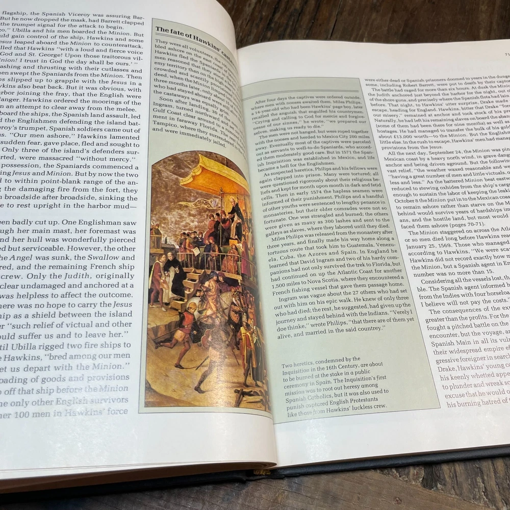 The Spanish Main The Seafarers Series Collection Leather Bound Hardcover Explore the high seas and rich histories with "The Spanish Main," a captivating addition to The Seafarers Series Collection. This leather-bound hardcover offers a luxurious look into the adventurous biographies and travel narratives that Time Life Books is renowned for. Its 176 pages are filled with vivid storytelling, bringing the era of exploration and discovery to life. A treasure for collectors and enthusiasts alike, "The Spanish Main" stands out with its elegant cover and sturdy format. At 11.5 inches in length, 9 inches in width, and 1 inch in height, with a weight of 2.14 pounds, this nonfiction picture book is a timeless piece that makes a distinguished addition to any library.
