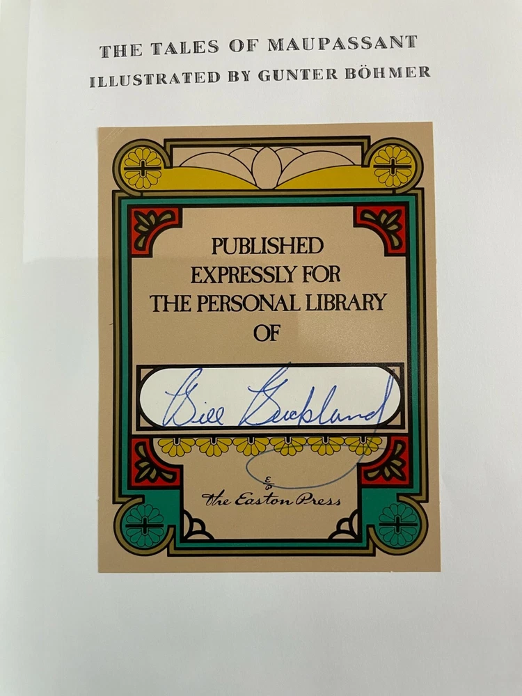 Leather Bound Edition of The Tales of Guy de Maupassant by Easton Press published in 1977. Condition: Light Gilt discoloration. Small defect to bottom edge of gilt pages. Bookplate is filled out. Please see photos. Please contact me with any questions!