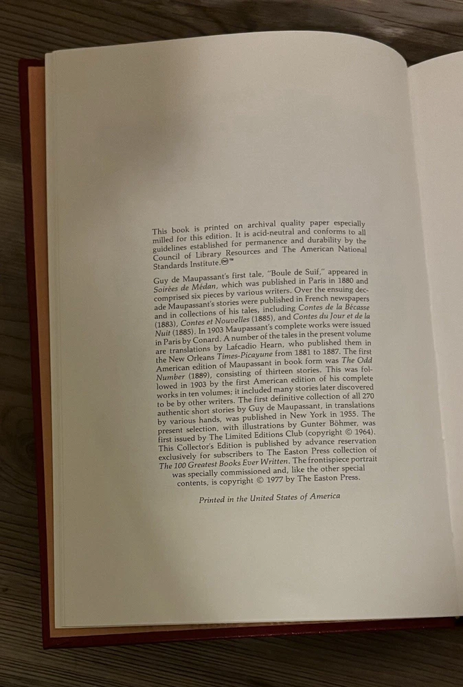 The Tales of Guy de Maupassant-Easton Press-The 100 Greatest Books Ever Written Small scratch on the side of gold pages, you can see in attached photos