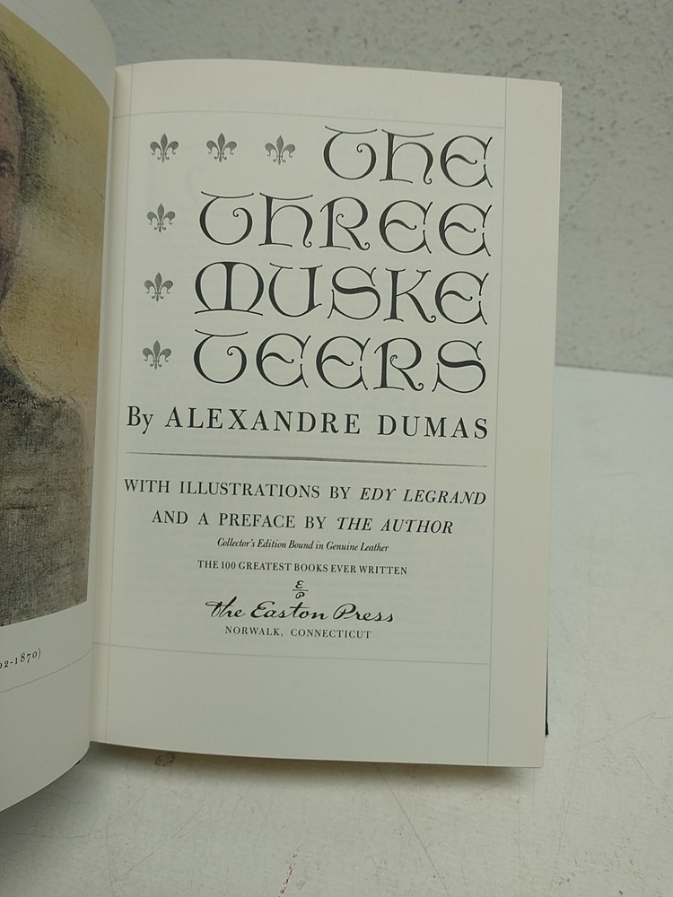 Bold swordplay, political intrigue, and enduring friendship unfold in The Three Musketeers by Alexandre Dumas, part of the Easton Press 100 Greatest Books Ever Written series. This leatherbound edition is crafted to Easton Press’s highest standards, featuring full leather binding, ornate gilt accents, raised bands on the spine, archival-quality paper, moiré silk endpapers, and a satin ribbon marker. The result is a visually stunning and durable volume that honors the literary importance of this beloved classic. Dumas’s tale follows young d’Artagnan as he joins forces with the legendary trio—Athos, Porthos, and Aramis—navigating the perils of 17th-century France in service of honor and justice. Full of adventure, wit, and historical drama, The Three Musketeers remains one of the most celebrated novels of all time. This edition is a fitting tribute to its place in literary history and a distinguished addition to any personal library. Pre-Owned. See photos for condition. Ships via USPS Media Mail. Please message with any questions. We ship Monday-Friday.