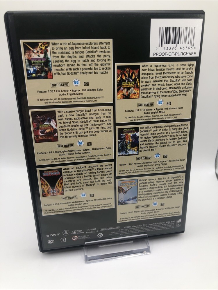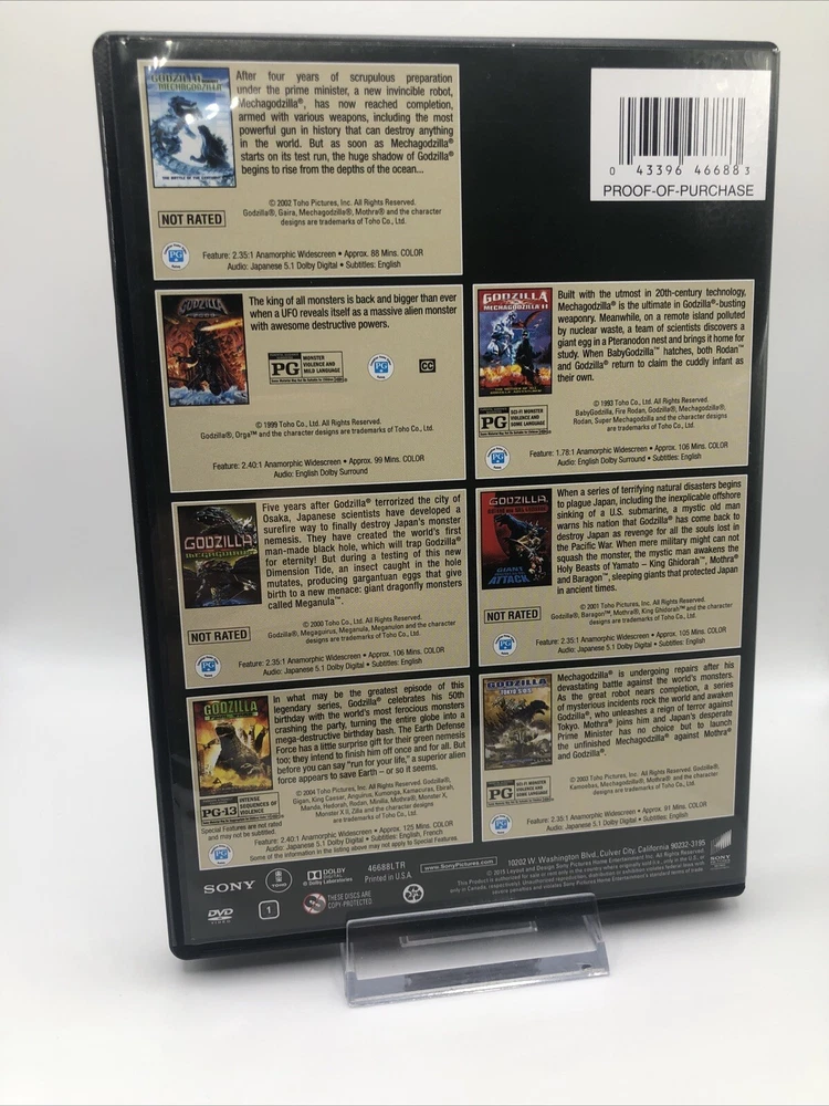 The Toho Godzilla Collection is a 7-disc DVD set released in 2016 by Sony Pictures Home Entertainment. It features Godzilla movies directed by Ishiro Honda, with English subtitles and language. The collection includes foreign, sci-fi, action, horror, and fantasy genres, with Godzilla as the main actor. This collector's edition box set is in widescreen format and Region Code 1 (US, Canada).