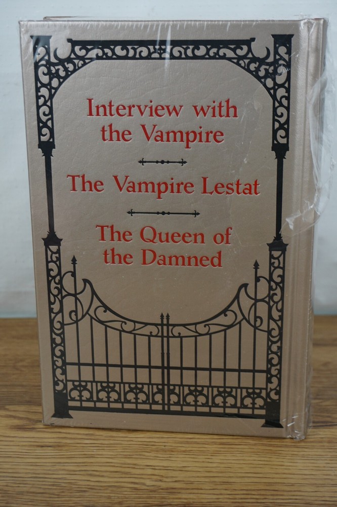 Item Details You are buying the pictured copy of The Vampire Chronicles (Interview with a vampire, the vampire Lestat and the queen of the damned). Item is new/unread but is a ding & dent. See pictures for the condition of the book. The book has about 1,296 pages and is bonded leather with a ribbon bookmark. Shipping Details Domestic USA Orders only. Your item will be shipped via USPS mail. Payment Information & Terms of Sale I accept payments through eBay's managed payments system. Major credit cards, Paypal and other payment options are accepted. Please make your payments within 3 days of purchase. I will put your item in the mail within 1-2 business days after seeing payment. E-Bay may add sales tax for orders to certain States. Return Policy Returns will be accepted within 30 days of purchase. Partial returns are not be accepted, only complete sets of unopened packages will be accepted for return. Questions, Issues and Feedback I'm committed to providing all my customers fast and high quality service. If you have any questions or run into any issues with your order, please contact me through E-Bay and I'm happy to resolve any problems you may have. Your feedback is important. I'd ask you please take the time to provide positive feedback after you receive your order. I provide positive feedback to all customers I receive feedback from.