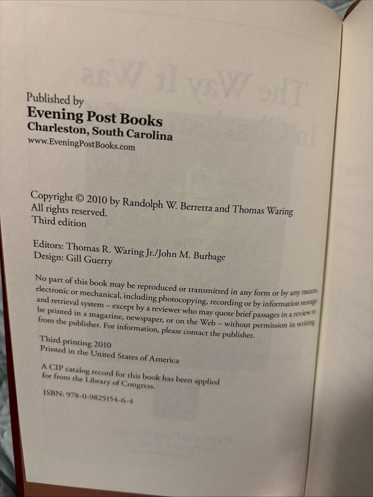 "The Way It Was In Charleston, S.C." is a leatherbound book from the Charleston Reader Series, published by Evening Post Books in 2010. Written by Laura Witte Waring, this nonfiction book explores local history and is intended for an adult audience. With gilded edges and a built-in bookmark, this hardcover book provides a nostalgic glimpse into the past of Charleston, South Carolina. Perfect for history buffs and those interested in Southern culture.