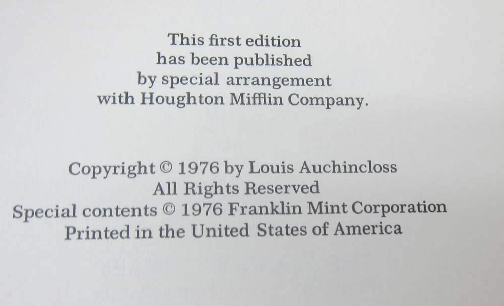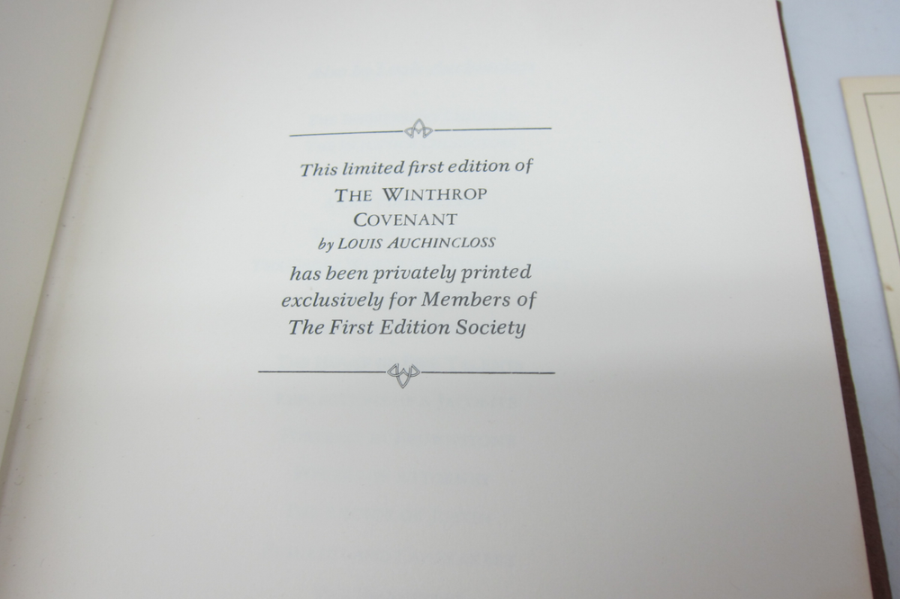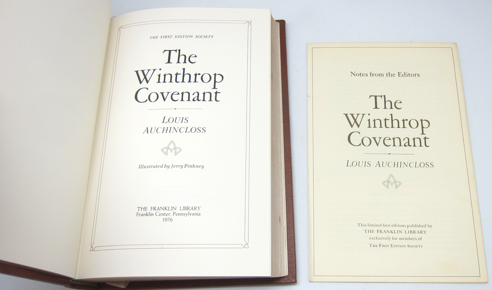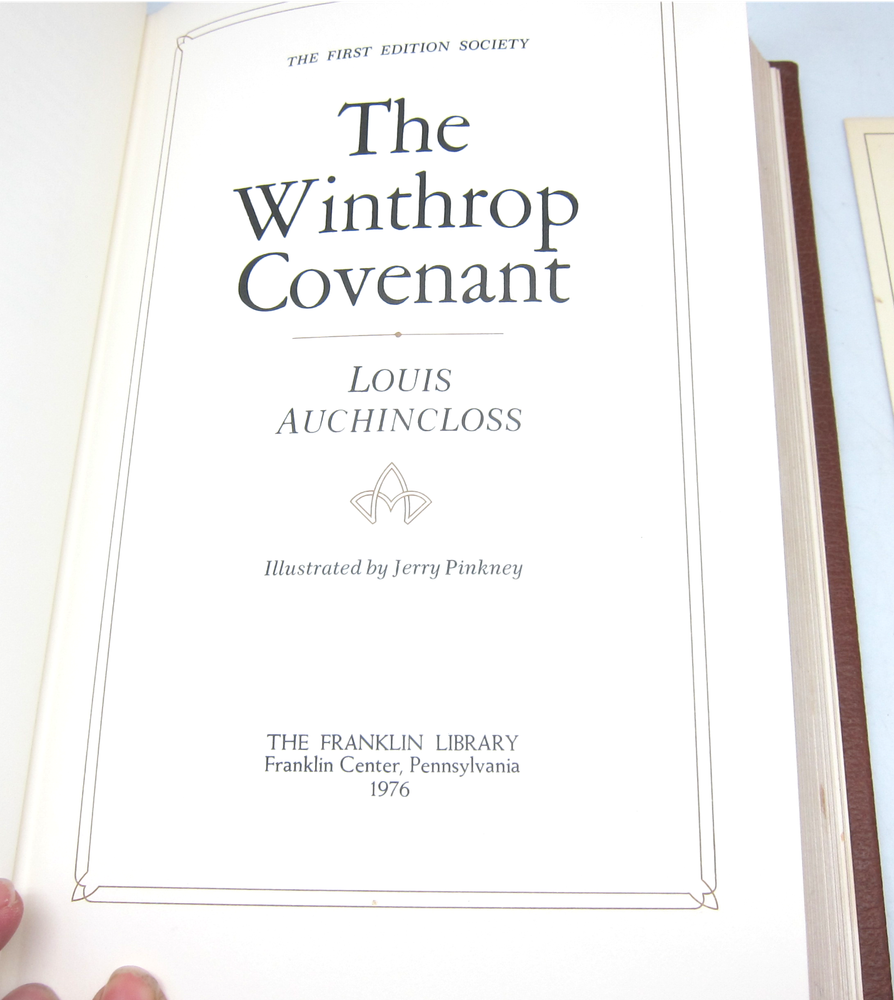 Louis Auchincloss' The Winthrop Covenant, from the Franklin Library. Full leather covers, with raised spine hubs. Like new condition. Beautiful bright gilt on page edges and covers. No scratches or ot...