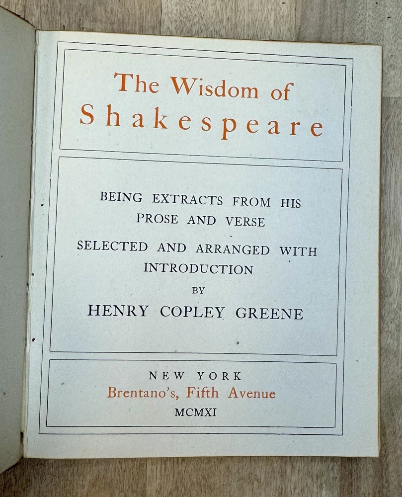 This antique book, titled "The Wisdom of Shakespeare," is a rare find for any literature enthusiast. The leather-bound 1911 edition, published by Brentano's in New York, is a valuable addition to any book collection. The book is written in English and contains special attributes that make it a unique piece. The book's topic is literature and fiction, with a focus on the works of Shakespeare. It is categorized as a collectible and antiquarian book, making it a valuable investment for any book collector. The region of the book is North America, and it has been published by Brentano's. This book is a must-have for anyone interested in rare editions and classic literature. *** USPS Ground shipping is 3-6 WEEKS on average from ALASKA. Packages are sent by boat from Anchorage to Seattle then trucked to where you are. Priority is 3-7 days. If you want to receive your items quickly, select the Priority Rate option when paying.