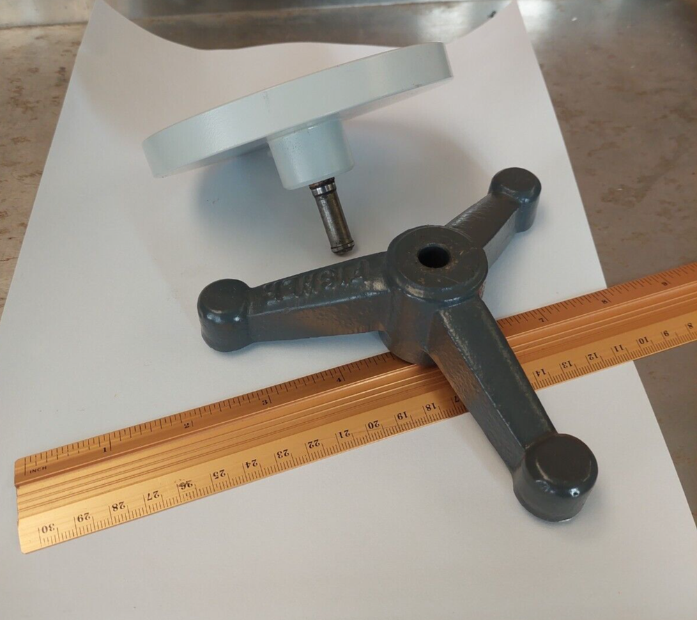 Inoculating Turntables - 14212-20 From Cole Parmer description: More About this Item These hand-operated, inoculating turntables produce nearly concentric circles of evenly distributed bacterial colonies from dish edge to center. Deposit your bacterial sample in the center of the petri dish. Rest your spreader on the surface of the agar and gently spin the turntable to distribute the sample into concentric circles. Evenly distributed samples promote identification and ensure uniform exhaustion of agar nutrients. The inoculating turntables come in two sizes. Model 14212-10 sits flat on the benchtop and accommodates 100- and 150-mm diameter petri dishes. Model 14212-20 comes with a tripod and accommodates 100-mm diameter petri dishes. Both units feature a baked-on acrylic enamel finish with a black enamel weighted base, a raised gripper lip, and a recessed center disc covered with nonskid rubber.
