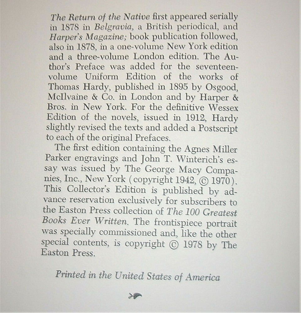 A deluxe limited edition from the 100 Greatest Books Ever Written series with genuine, premium leather binding, 22kt gold cover and spine lettering and decoration, acid-neutral paper, Smyth-sewn pages with gilded edges, and endsheets of moiré silk with a permanent satin ribbon page-marker. There may be a clip in some of the images. The binding is so tight I needed an aid to hold the book open for photos. COVER: clean / near perfect ENDSHEETS: pristine BINDING: excellent and tight PAGES: clean PAGE EDGES: faint signs of handling approx. size in inches: 9.25 x 6.5 x 1.5 approx. weight: about 3 pounds packed for shipping (padded and in a box) CHECK MY OTHER LISTINGS FOR MORE GREAT STUFF! All collectibles and memorabilia in my listings are from my personal collection and were originally distributed by an official source such as record label, movie studio, print publisher or licensed manufacturer. Check my eBay store for more out-of-print and hard-to-find items. NO BOOTLEGS, NO KNOCK-OFFS, NO PIRATE COPIES! SAVE MONEY : Unless otherwise indicated, I offer HALF PRICE SHIPPING for additional items purchased with the same payment. Take 50% off the shipping cost of additional items won within 5 days of each other. Pay full shipping only for the item with the highest shipping amount. To receive the discount, all qualifying items must be purchased with a single payment. International Buyers Please Note: Import duties, taxes and charges are not included in the item price or shipping charges. These charges are the buyer's responsibility. Please check with your country's customs office to determine what these additional costs will be prior to bidding/buying. These charges are normally collected by the delivering freight (shipping) company or when you pick the item up do not confuse them for additional shipping charges. We do not mark merchandise values below value or mark items as "gifts" - US and International government regulations prohibit such behavior. PLEASE READ THE ENTIRE LISTING and ask any questions before bidding or buying THANKS for visiting POPULAR CULTURE COLLECTIBLES! Keep on Shopping & Save on Shipping!