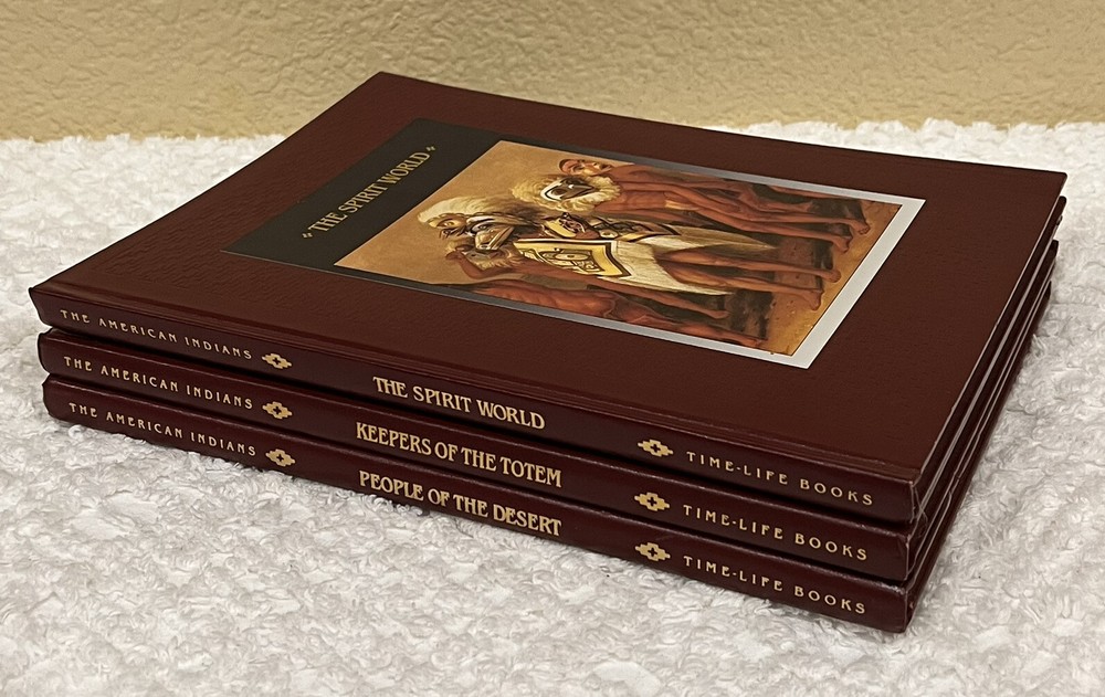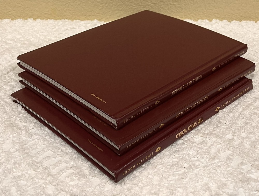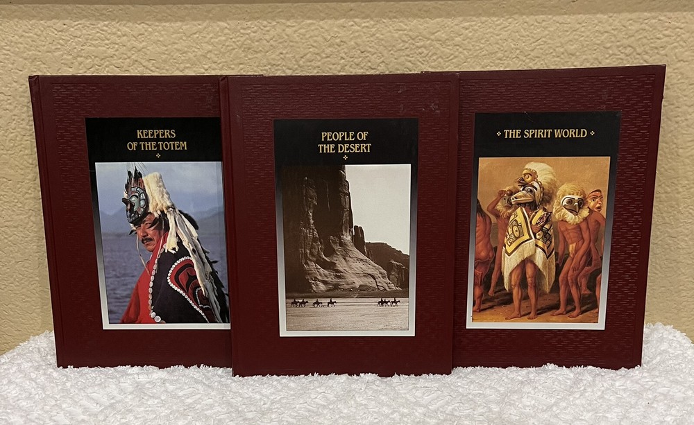 Time-Life Books The American Indians Set of 3. The Spirit World, 176 pages Keepers of the Totem, 192 pages People of the Desert, 192 pages Copyright 1993 11" x 8-1/2" x 1/2" Pre-owned, mostly in good condition - no loose leafs, though there are wear marks on cover, along bindings and edges, see photos From a smoke-free and pet-free home. Ships USPS Media Mail Thank you! Bin M4.009