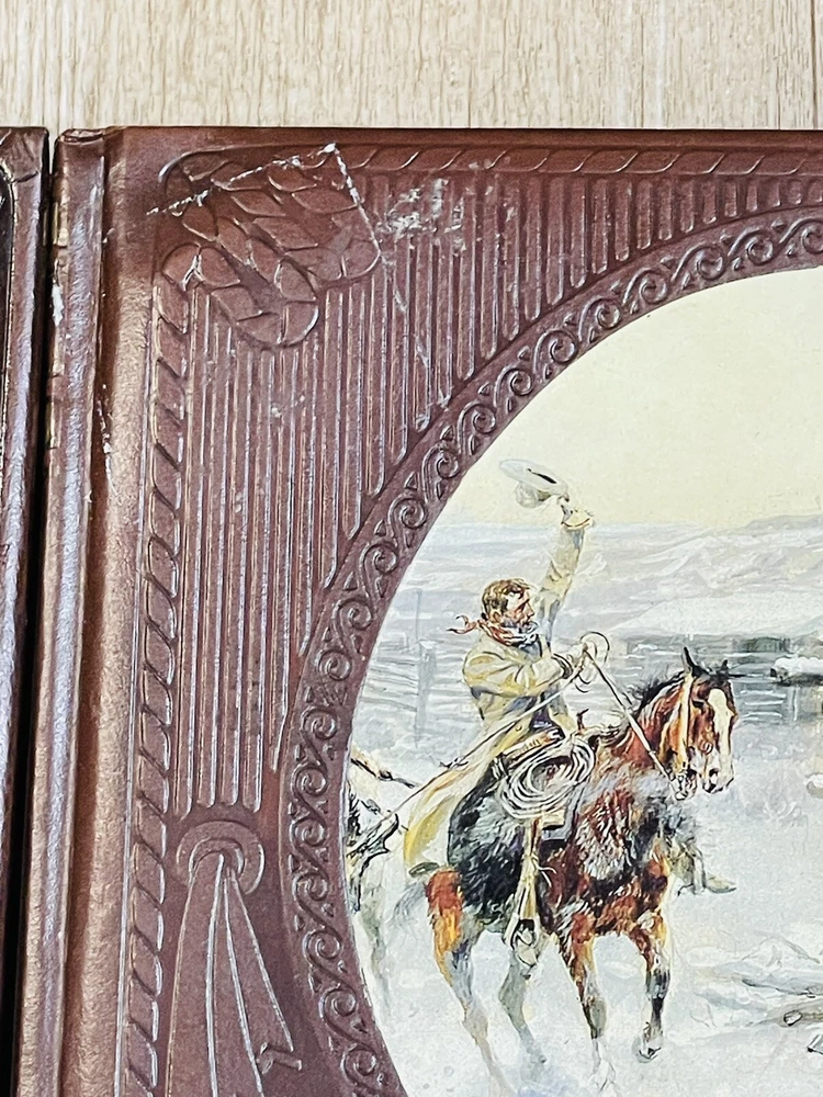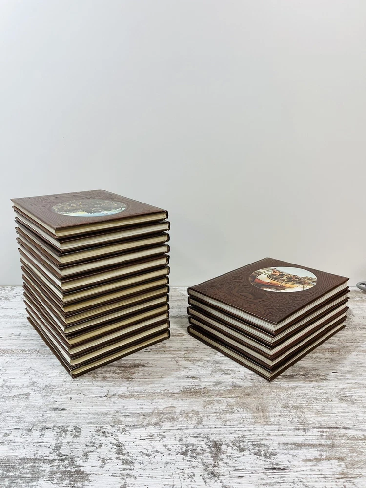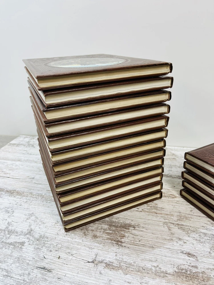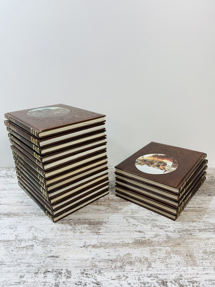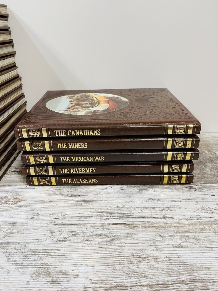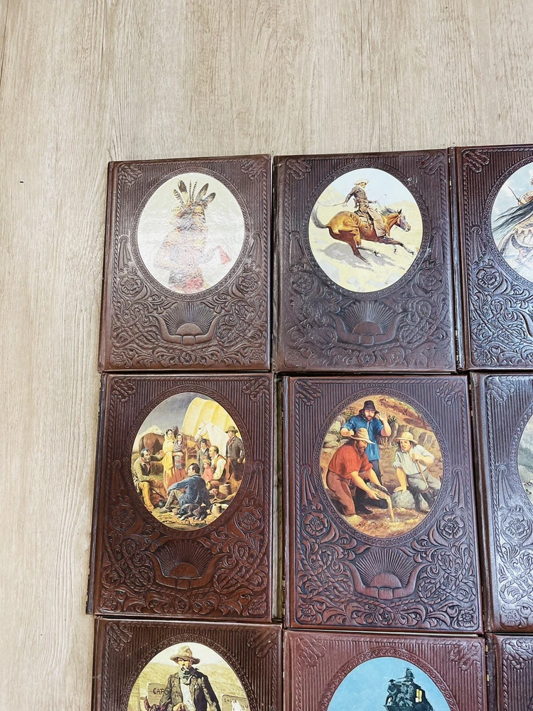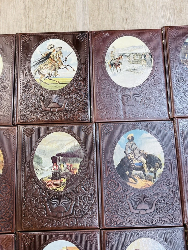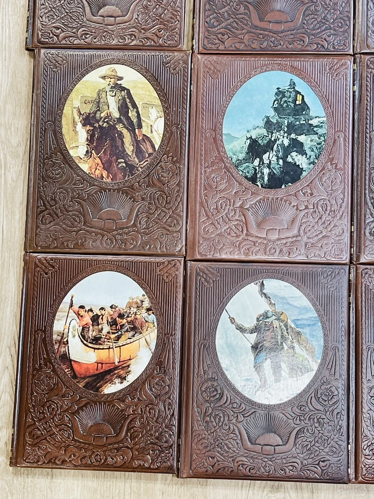 The books are mostly in good condition. The outsides do have some corner wear and a couple have marks/ chips and indentations, the insides are good. Included is books one through 13 number 17, 18, 20, 21, 22. Three have binding issues the two most severe are the expressman and the soldiers while the Texans just the top is separating.