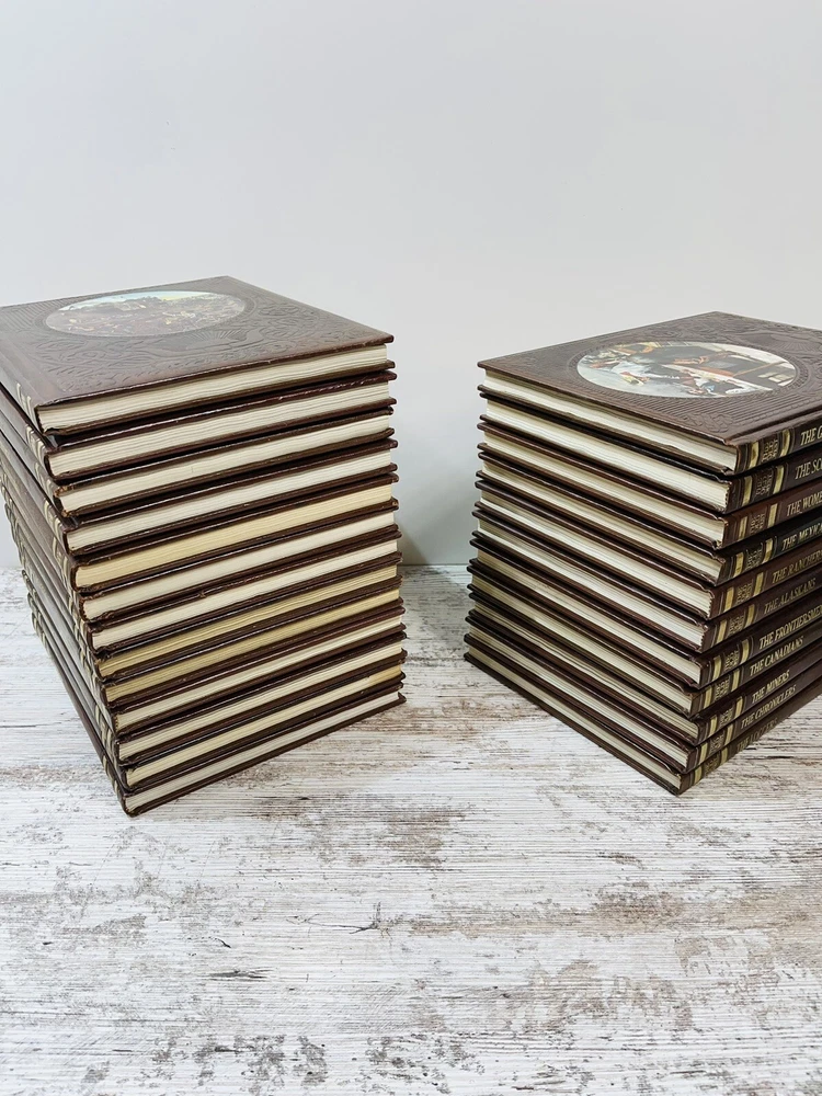 Just got this Time Life Old West book set and it's fantastic! The books are in great shape overall - some minor wear on the covers but the pages inside are perfect. Even though it's missing two volumes, this collection is absolutely worth having for any Western history fan. The illustrations and stories really bring the frontier to life!
