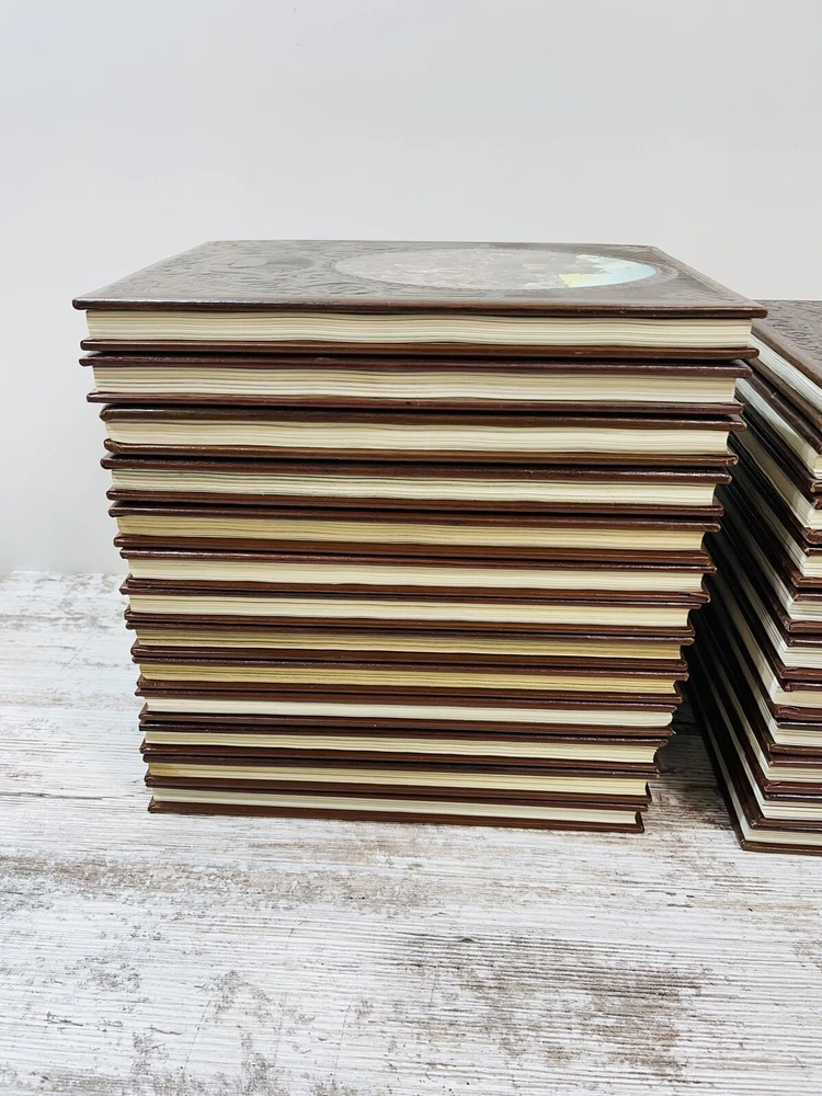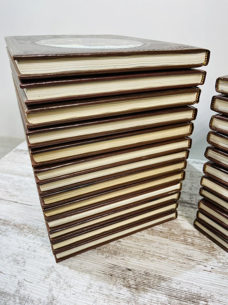 The books are in good condition. The outsides do have some corner wear and a couple have marks/ chips and indentations, the insides are all very good. All in all it’s a nice set. It is missing number 16 and number 26 Which is the Spanish west, and the end and the myth.