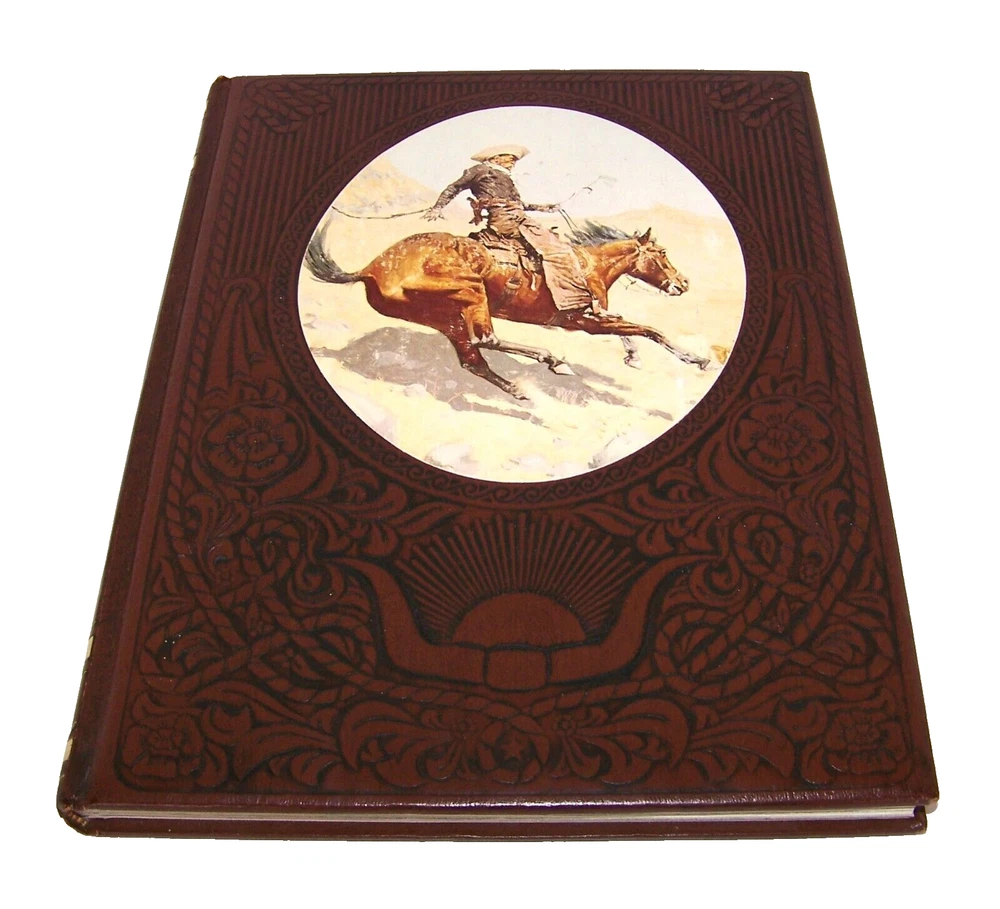Explore the wild west with this set of three hardback books from the Time Life Books' The Old West series. Immerse yourself in riveting tales of The Cowboys, The Indians, and The Trailblazers, all told in a nonfiction narrative style that will keep you on the edge of your seat. All published in 1973. This vintage book collection is perfect for young adults, ages 9-12, and adults alike, making it an ideal addition to any bookshelf. Each book features a faux leather bound cover and stunning illustrations that bring the stories to life. Whether you're a history buff or a fan of westerns, this set is sure to captivate and entertain. Don't miss your chance to own this Book Club Edition collection, proudly made in the United States. The pages in all three books are clean and flat. No handwriting. However, there is some wear on the books' covers, hinges and end papers. Please see the following details: "The Trailblazers" has some wear on the bottom of the front cover (photo #3). Additionally, the front endsheet and first page have pulled away from the hinge slightly (photo #4). All pages still seem well glued and secure. On "The Indians," t here is some light wear on the bottom of the back cover (photo #6). Also, the front endsheet and first page have pulled away from the hinge slightly (photo #7). All pages still seem well glued and secure. "The Cowboys" has some wear on the back cover (photo #9) as well as a small gouge on the top edge (photo #10). Additionally, the front and back endsheets have stains which look like the result of a liquid spill (photo #11). Each book measures 11" x 8.5" x 1" and weighs just over two pounds. Shipped to you from a non-smoking home.