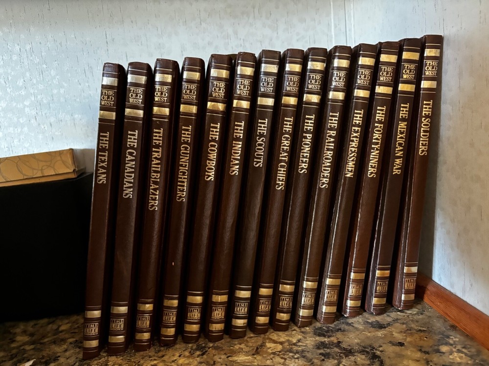 Beautiful vintage books from series The Old West published by Time Life Books in 1975. These hardcover books have been kept in near perfect condition, each of the 14 books on a different topic with illustrations and pictures throughout. The titles included are as follows: The Texans The Canadians The Trailblazers The Gunfighters The Cowboys The Indians The Great Chiefs The Pioneers The Railroaders The Expressmen The Forty-Niners The Mexican War The Soldiers