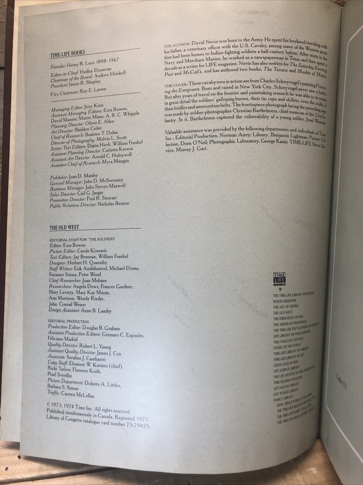 Time Life Books: The Old West Series : THE SOLDIERS VERY GOOD PREOWNED VINTAGE CONDITION 1976