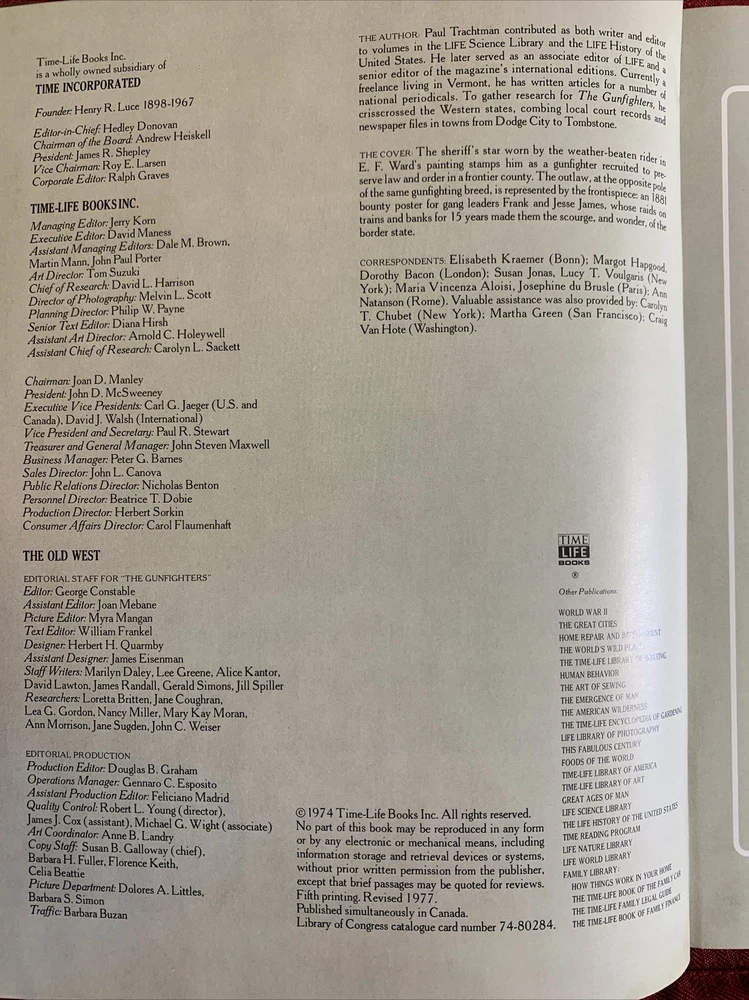 | Book Title | Time Life Old West Series |