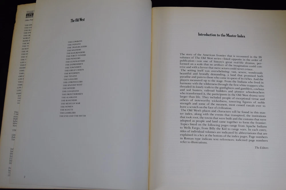 Time-Life Books The Old West Series is an incomplete set of 23 out of 26 hardcover books focusing on American history and Westerns. Published by Times Books in the 1970s, the books are intended for young adults and adults. The series features faux leather binding and covers topics such as United States history, specifically the Western region. The books are in English and were published in the United States. **IMPORTANT NOTE: **Missing 3 books: The Loggers, The Miners and The Alaskans, however the master index is present.***