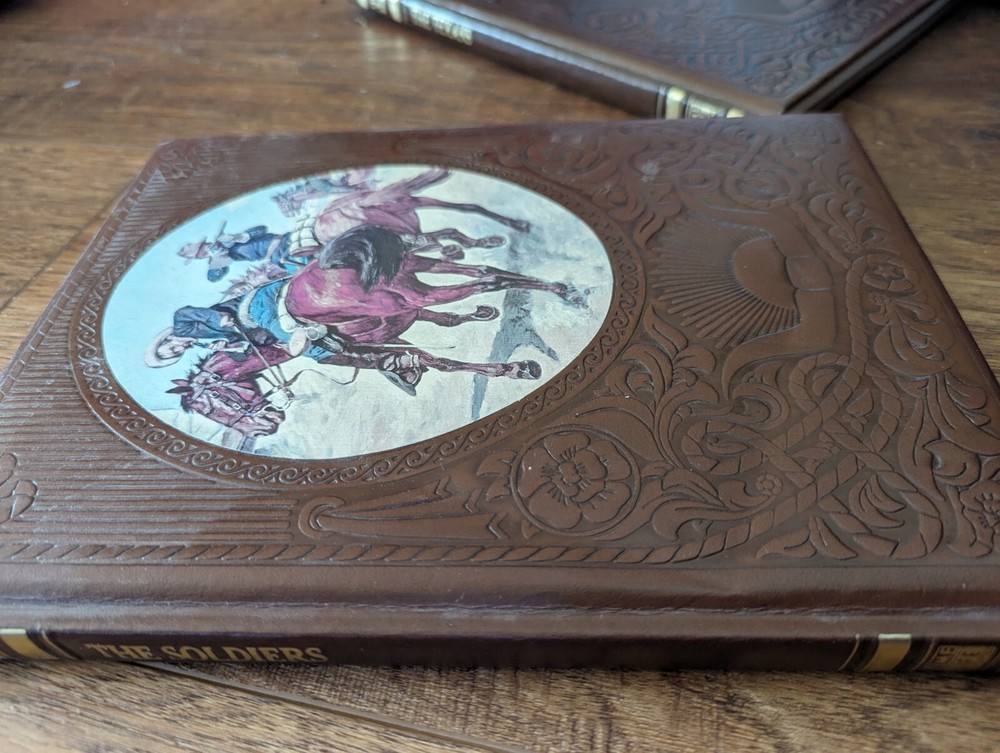 Excellent condition. Shows no wear or marks. "The Soldiers": Volume 04 of 27 of Time-Life Series "The Old West". Published in 1974. "The Old West" is a series of books about the history of the American Old West era, published by Time-Life books. Each book focused on a different topic specific for the era, such as cowboys, American Indians, gamblers and gunfighters. Each volume is 240 pages long, featuring many contemporary pictures and illustrations. They are bound in a patented imitation leather hardcover binding with the series name, title of the book and publisher imprinted in gold on the spine of the book. The front cover of the book has a glued-on oval shaped picture. Beneath the picture embossed in the faux leather is a set of cattle horns with a rising sun depicted between the horns. The outline of the cover is embossed with a rustic rope. The back cover is blank. "The Soldiers": An overview of U.S. soldiers' lives in the West through the late 1800s. Particularly detailing events of the Indian wars, including Custer's last stand. Accompanied with many photographs and illustrations. Chapters include battered cavaliers of the Indian wars, a mixed bag of Western forts, on the campaign trial, sudden fury in a long slow war, future commanders of the West, and anatomy of a disaster.