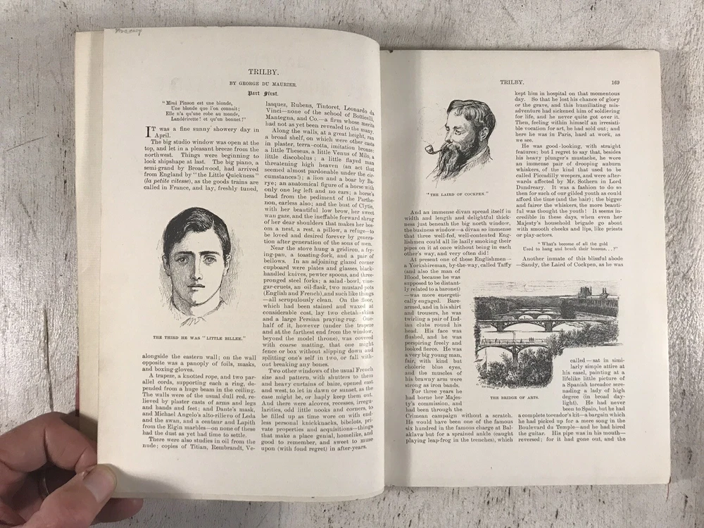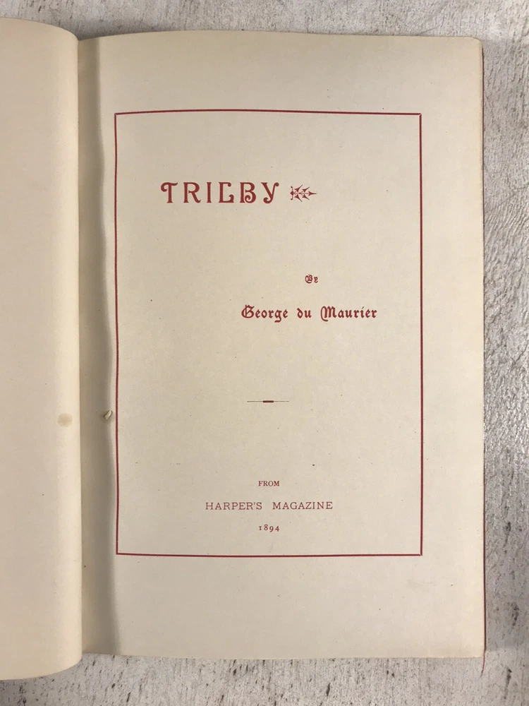 Trilby by George du Maurier Antique Fine Leather Binding Book ( 458-f) Condition: Some general wear else very good condition. Binding is tight and sound. See photos for complete description and condition. Publisher: Harpers Magazine Publication Date: 1894 Physical: 1 vol Size (inches): 10 x 7 Binding: Red 3/4 leather with marble boards and marbled end sheets. Gilt titles and decorations on spine. Top page edges gilt. This is a collection of the first printed serial appearances of Trilby from Harper's Monthly Magazines and bound as one complete work. High quality paper has been laid down covering superfluous text to make for a continuous narrative. Language: English I ship next business day. Satisfaction guaranteed. Check out more books and stuff here at my Ebay store: https://www.ebay.com/str/ingeneral?_trksid=p2047675.l2563 I ship next business day. Thanks for looking