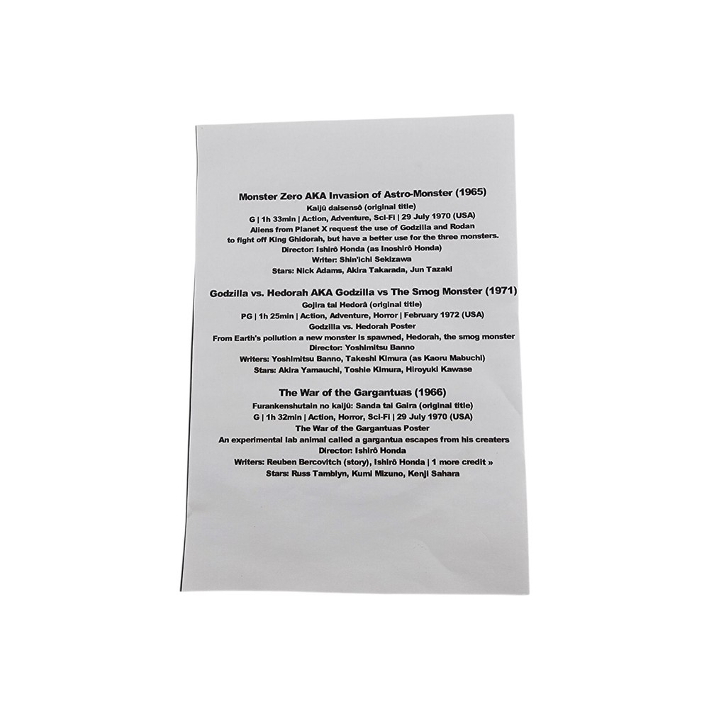 The Triple Feature DVD "Godzilla vs. The Smog Monster" includes three classic Godzilla movies directed by Ishiro Honda & Yoshimitsu Banno. The DVD is formatted in NTSC video format in English, making it accessible to a wide audience. With a combined runtime of 4 hours and 30 minutes, this sci-fi and fantasy genre films are rated G & PG and comes in a standard jewel case for easy storage and display. Perfect for fans of the Godzilla franchise, this DVD set offers a thrilling viewing experience of some of the most iconic monster battles in the series. The War of the Gargantuas, Invasion of Astro-Monster & Godzilla vs The Smog Monster The War of the Gargantuas, Invasion of Astro to Monster & Godzilla vs The Smog Monster