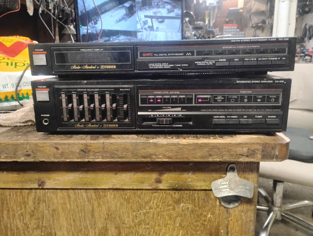 The product is a Tuner and Amplifier Studio Standard made by Fisher, a well-known brand in the vintage electronics industry. This vintage audio equipment is designed for amplifying and tuning audio signals, providing a high-quality audio experience. The Fisher brand is recognized for its premium and reliable products in the vintage audio and video category, specifically in amplifiers and tube amps. This tuner and amplifier set is likely to deliver excellent sound performance, making it a desirable choice for audiophiles and collectors of vintage electronics. AM/FM Stereo Synthesizer Tuner FM-226. Integrated Stereo Amplifier CA-226.