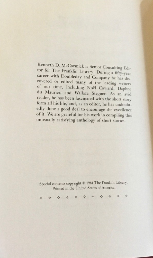 This is a beautifully bound copy of Twenty-Two Tales from the Franklin Library. The leather binding adds a touch of classic elegance to this collection of literature and fiction. The publisher's attention to detail and craftsmanship can be seen in every page of this book. With topics ranging from classics to contemporary literature, this collection is a must-have for any book lover. This book is sure to make a great addition to any collection, whether you are an antiquarian or just looking for a good read.