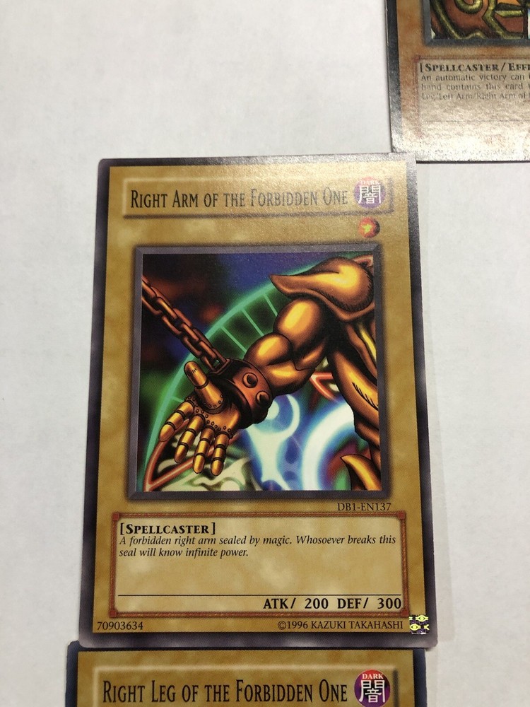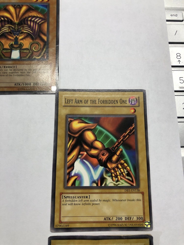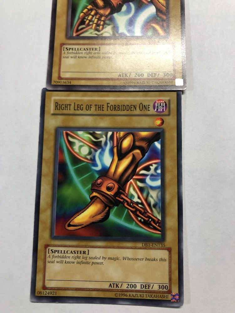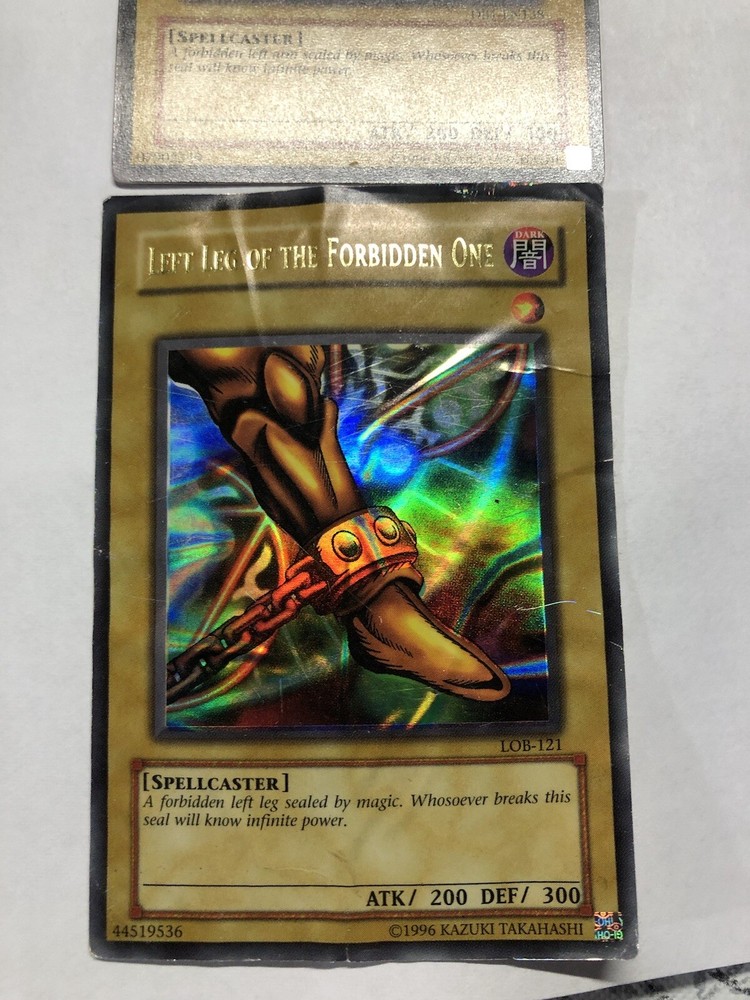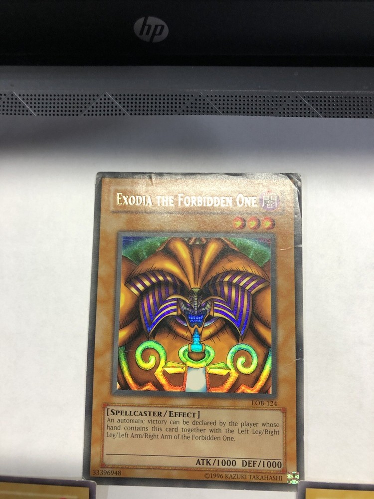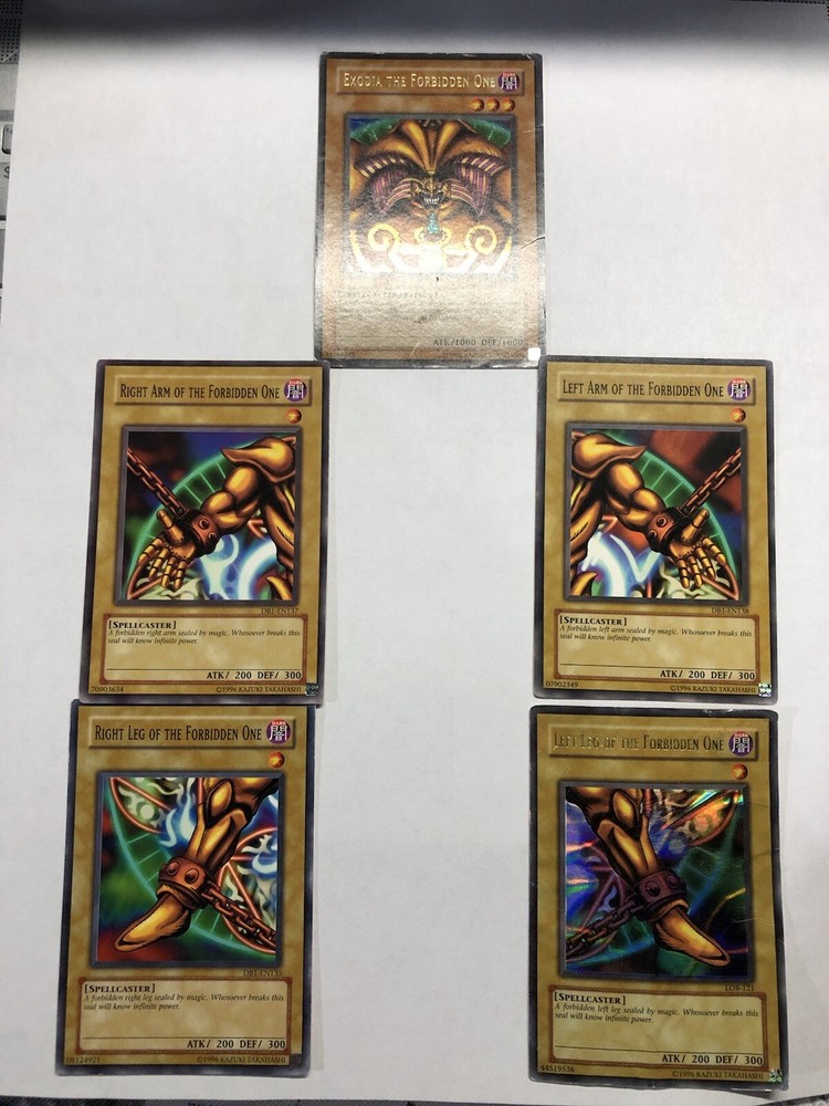 ULTRA RARE Exodia The Forbidden One Mixed 5 Card Set Lob Face - LP. Left leg is in BAD shape. Face is LP, other 3 are NM Shipped in 5 different card protectors in 1 Bubble mailer