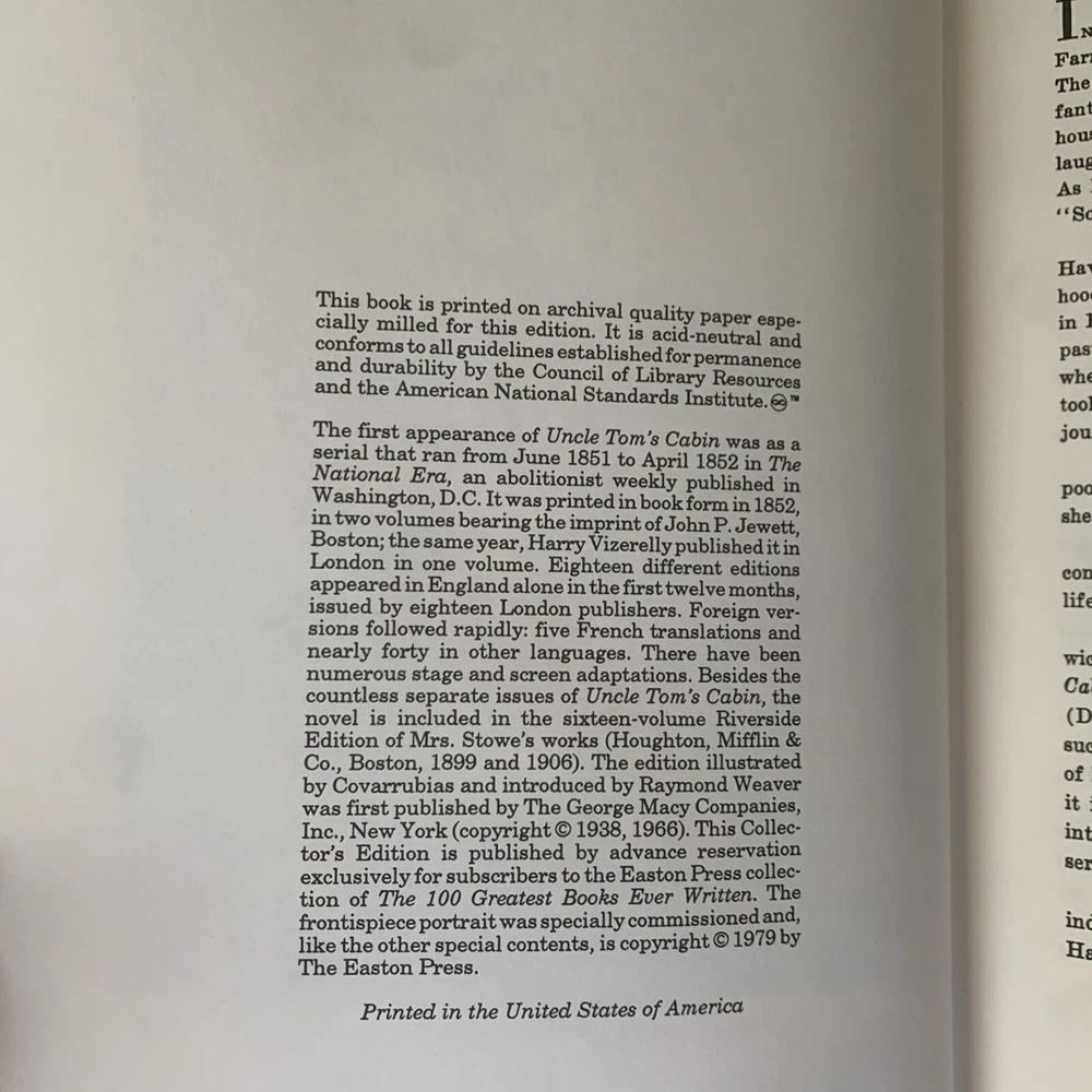 Uncle Tom's Cabin by Harriet Beecher Stowe 1979 Easton Press Edition. Shipped with USPS Media Mail. Book is in very good condition.