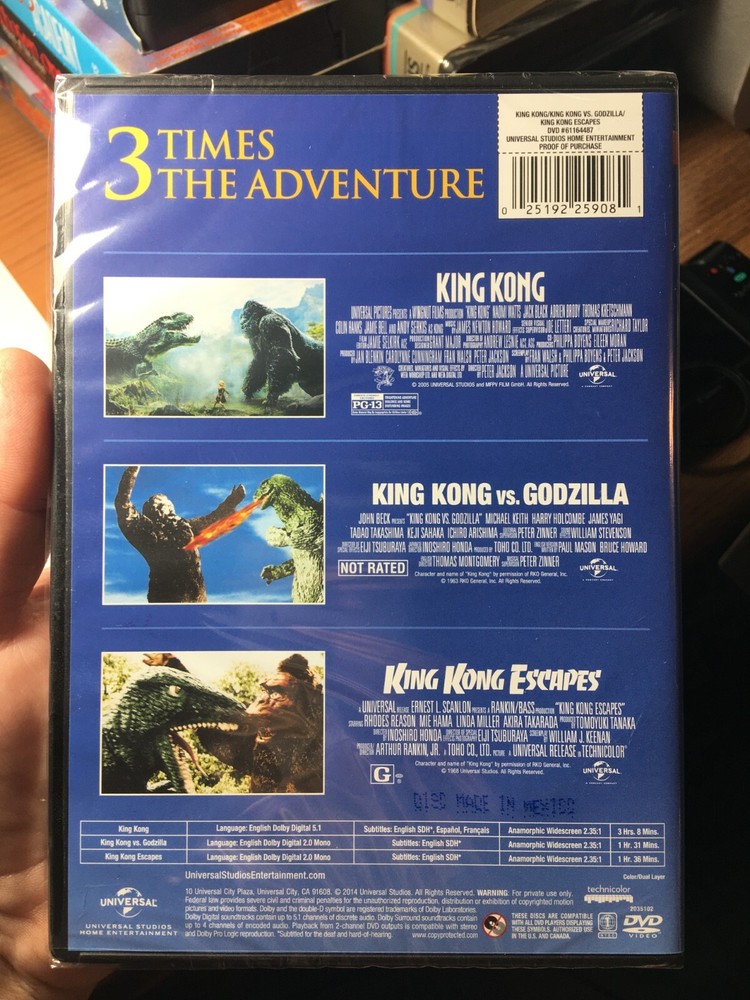 Up for bidding...Universal Triple Feature... * King Kong * King Kong vs. Godzilla * King Kong Escapes New factory sealed! US shipping...item will ship free... Please check out my other listings for more great items... Thanks for bidding!!!