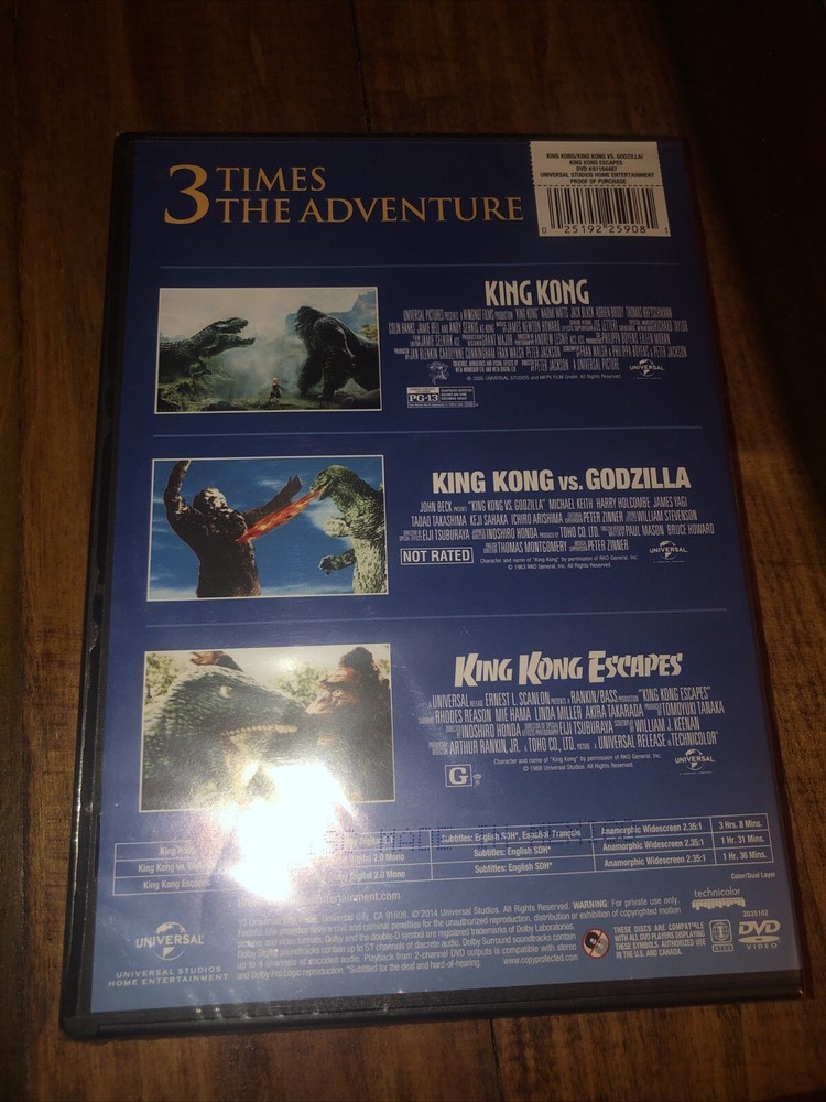 Universal King Kong, King Kong vs Godzilla, King Kong Escapes Movie DVD...