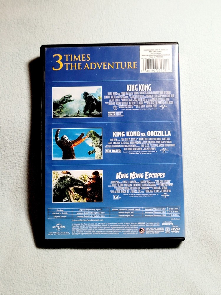This DVD set is a must-have for any monster movie fan! The discs arrived in excellent condition, played perfectly, and were packed with care to prevent damage. The seller is reliable, ships fast, and offers great bundle deals. Highly recommended for classic kaiju action—King Kong vs. Godzilla is a blast!