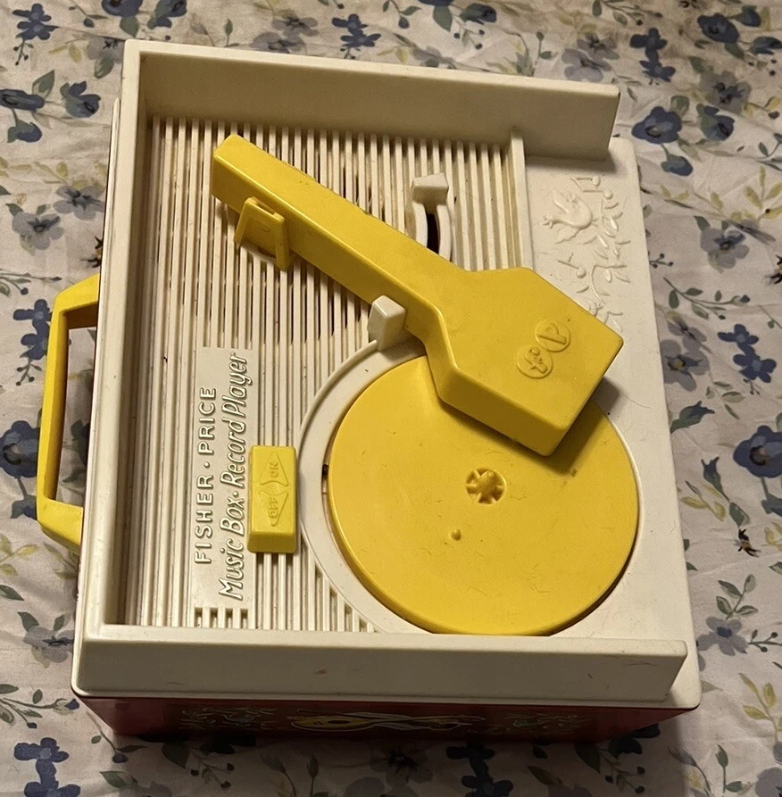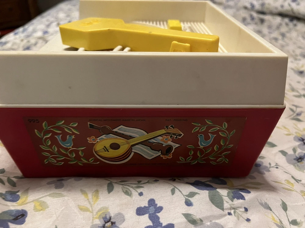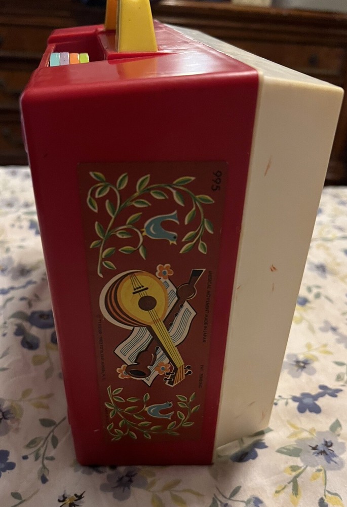 This vintage 1971 Fisher-Price music box record player is a treasure for collectors and music enthusiasts alike. It comes with four records, each providing a unique listening experience. The brand, Fisher-Price, is well-known for its quality toys and this music box is no exception. Made in the United States, it is a rare find for those interested in vintage toys. The music box is perfect for children and adults who appreciate the beauty of vintage toys. It is a great addition to any collection and makes for a wonderful gift. The records are in excellent shape and provide clear, crisp sound. This is a must-have for anyone interested in vintage Fisher-Price toys and musical toys in general. TESTED….Works Great!!