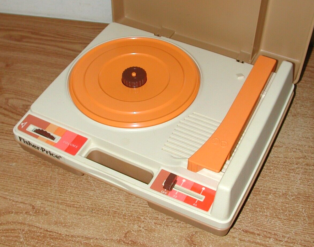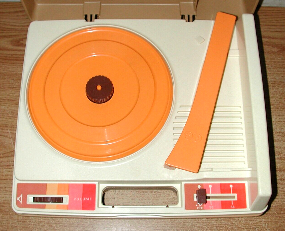 Description: Vintage 1978 Fisher-Price Children's Portable Phonograph Record Player Number 825. The record player is 2 speeds, 33 and 45. Measurement: 13.25" x 11.75" x 5". What Buyer Gets: 1978 Fisher-Price Children's Portable Phonograph Record Player Number 825. Condition: the record player and case are still in really good used physical condition with minor surface scratches and marks. I tested the record player, and it spins like it should, but the needle mostly slides across the record and there was no sound from the record, so I assume it needs a new needle. The record player is sold as is. See all the photos for the actual record player you will get, because what you see is what you get. Most of the items I sell on Ebay are used and were purchased at Estate sales and auctions, so therefore, they are sold as is. Questions are recommended if you are unsure of anything. I will combine shipping on multiple purchases.