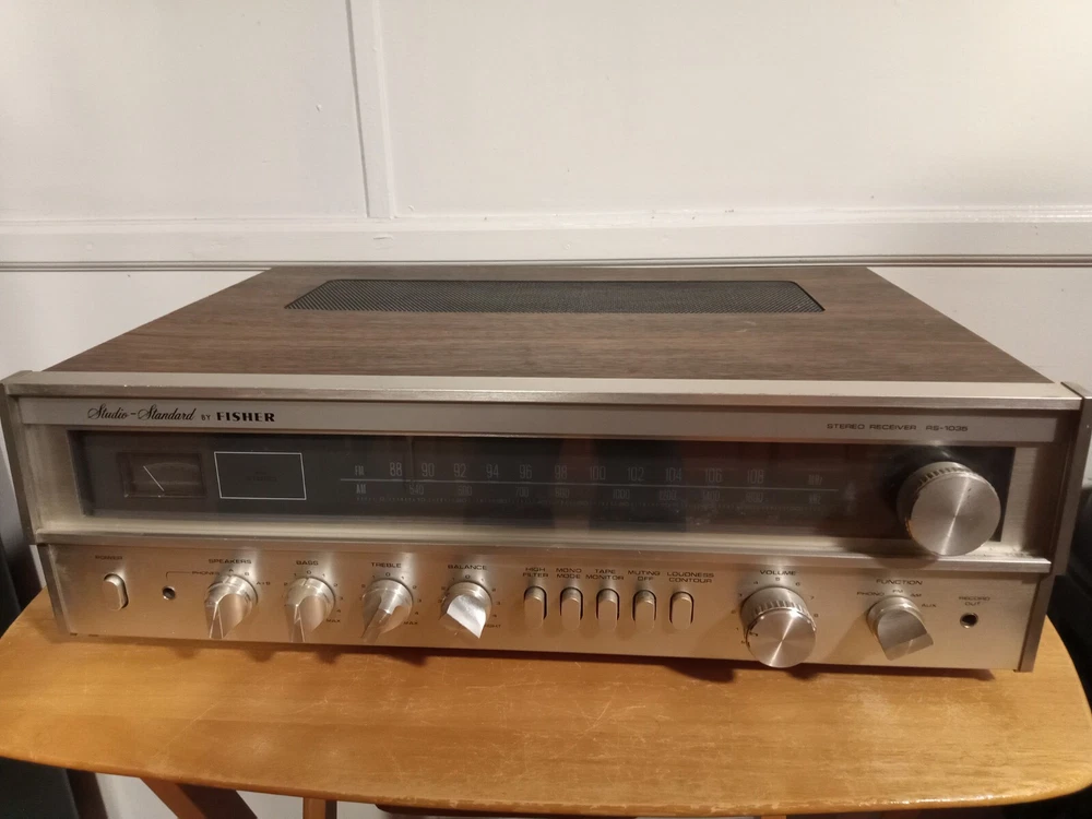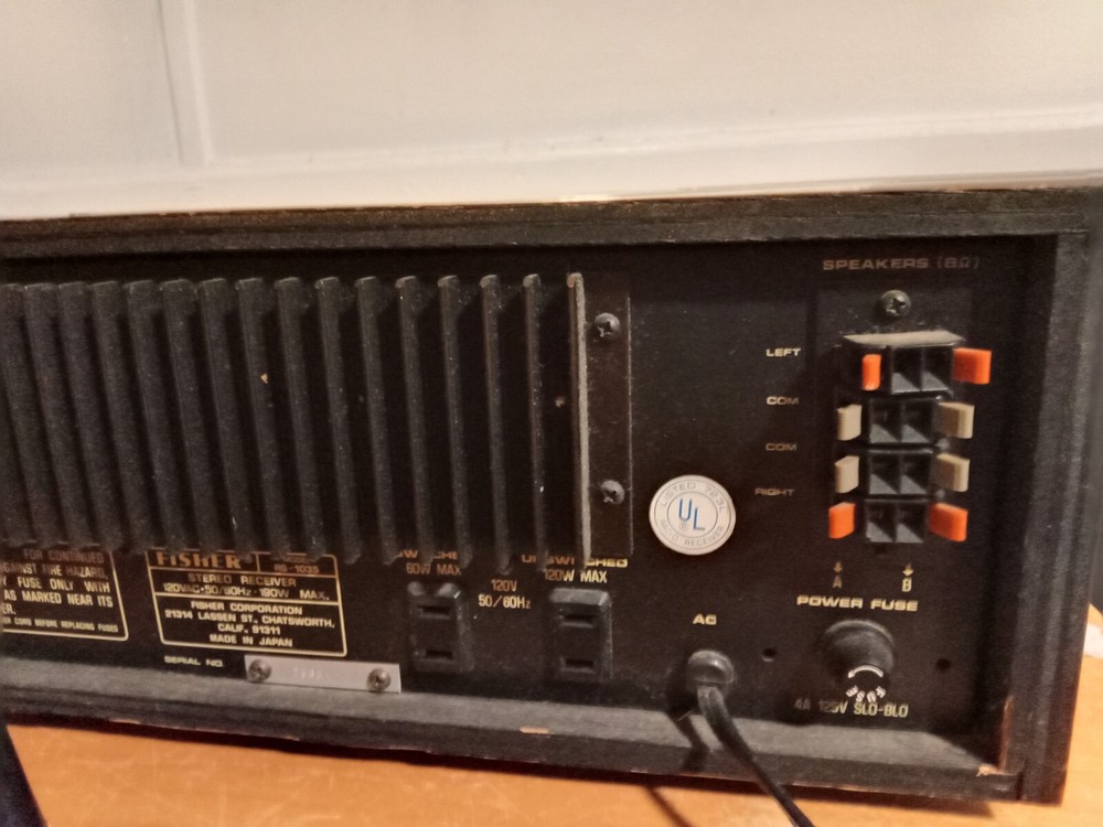 VINTAGE FISHER STEREO, WORKS GREAT, BRIGHT LIGHTS, PLAYS GOOD, HAS NORMAL WEAR, USE AS ANYTHING OLD AND VINTAGE, HAVE THIS READY TO GO, PLEASE CHECK OVER ALL PICTURES, MAKE SURE YOUR OK WITH THIS UNIT BEFORE BUYING, COST FOR SHIPPING IS ALOT FOR WEIGHT, THIS IS MODEL RS-1035, SEND ME A OFFER IF YOUR A SERIOUS BUYER