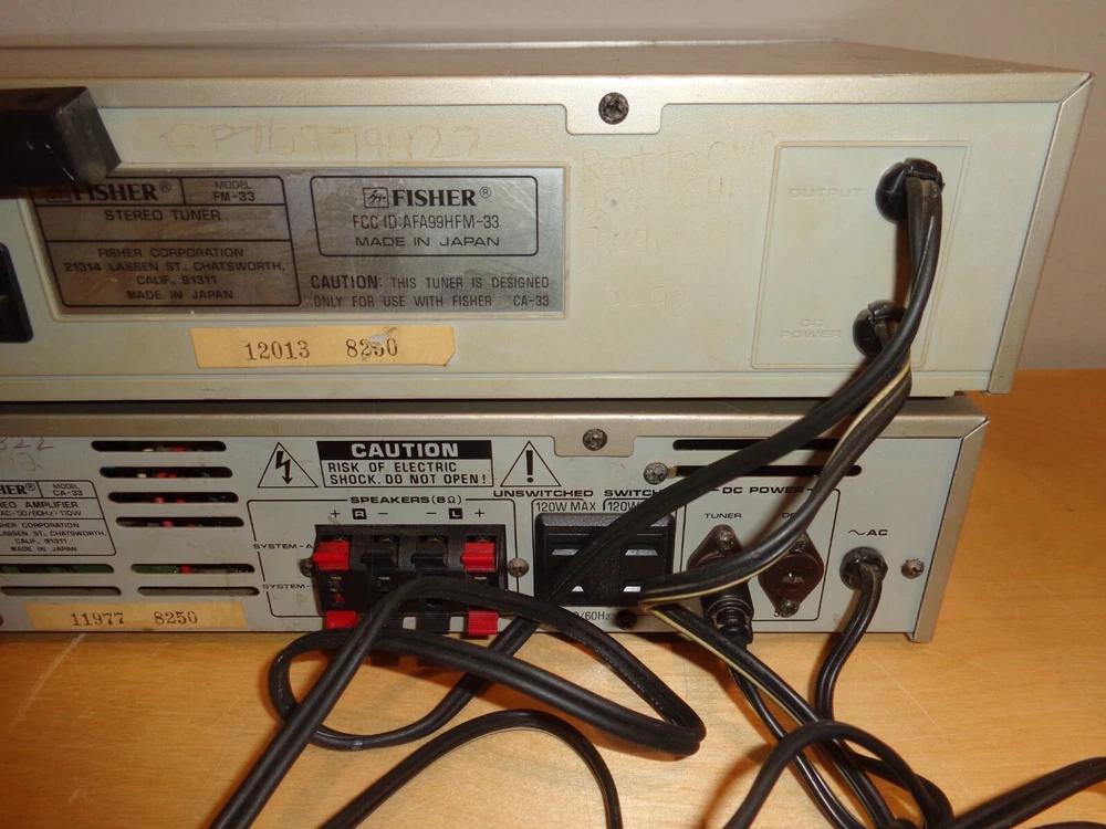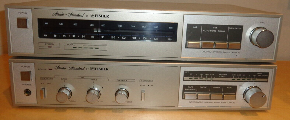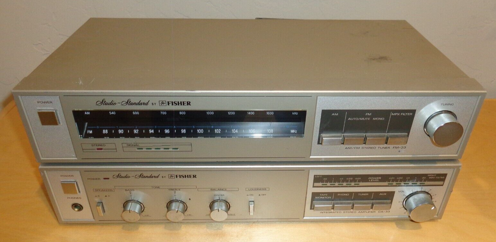 YOU ARE BIDDING ON PRE-OWNED VINTAGE FISHER STUDIO STANDARD MODEL CA33 STEREO FM33 AMPLIFIER TUNER. ITEMS ARE FROM AN STORAGE AUCTION & SOLD NOT FULLY TESTED. ITEMS WAS TESTED FOR POWER ONLY AND BOTH ITEMS POWER ON. THAT IS ALL THE TESTING THAT WAS DON DUT TO NOT HAVEING WHATEVER ELSE IS NEEDED TO TEST THE ITEMS. YOU WILL GET JUST AS YOU SEE IN PICTURES. ITEMS WILL BE SOLD AS-IS DUE TO NO FULLY TESTED. NO RETURNS FOR ANY REASONS. LOC. ROW 2 RACK 2