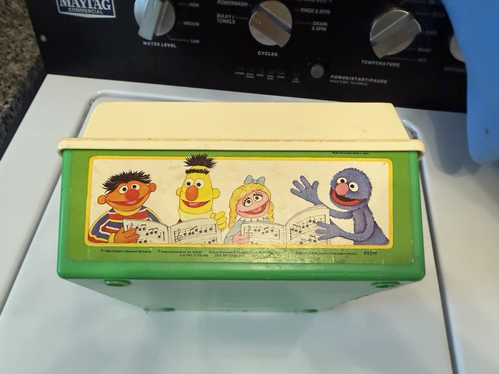 The Vintage Fisher Price Sesame Street Music Box Record Player is a nostalgic and educational toy that allows children to explore music and storytelling through the beloved Sesame Street characters. This classic toy features a record player that plays two records, providing an interactive and engaging play experience for young children. With its durable construction and charming design, this music box record player from Fisher Price is sure to delight both parents and children alike.