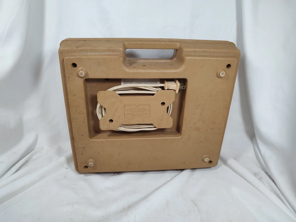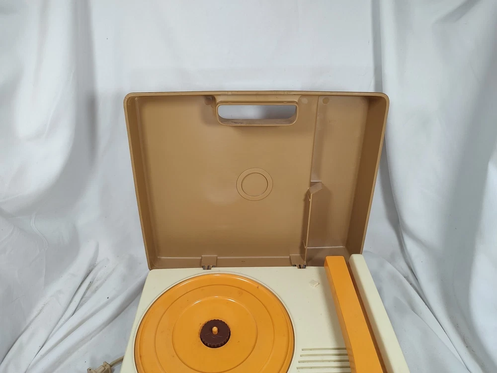 Outer case shows normal wear from use and storage. Record player works on both speeds and is in good condition. Please check pictures for overall wear and condition. Ships fast and safe.