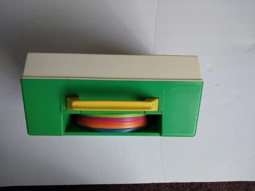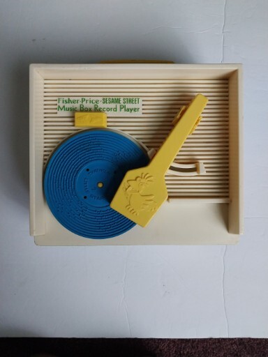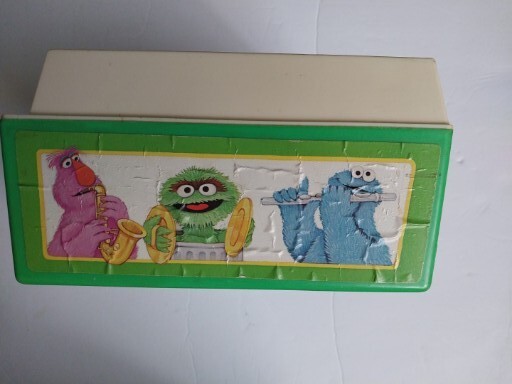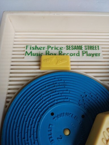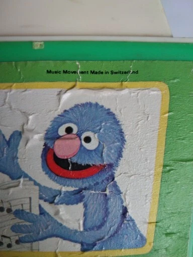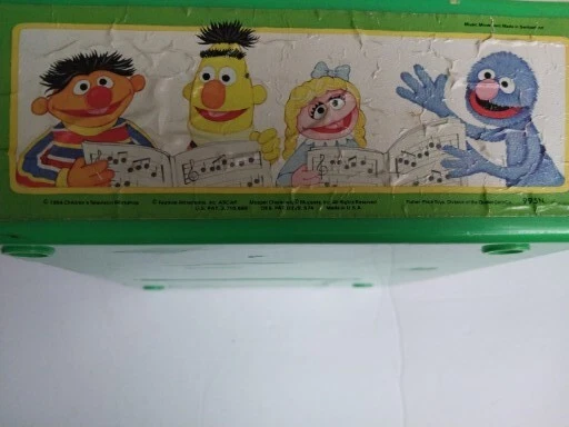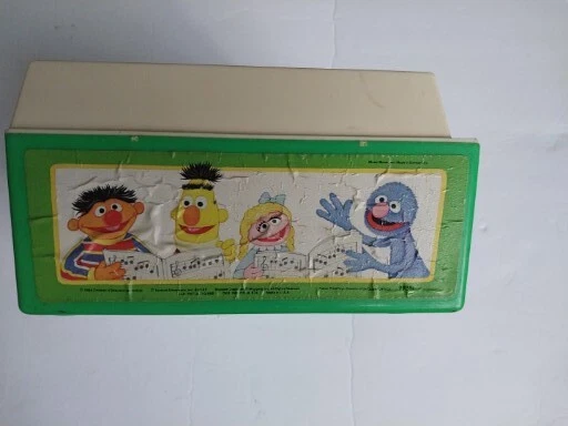 Vintage 1983 Fisher Price Sesame Street Music Box Record Player 5 Records Works. There is some wear on the stickers from age. Included is a 6th Duplicate record MADE IN USA Music movement made in switzerland