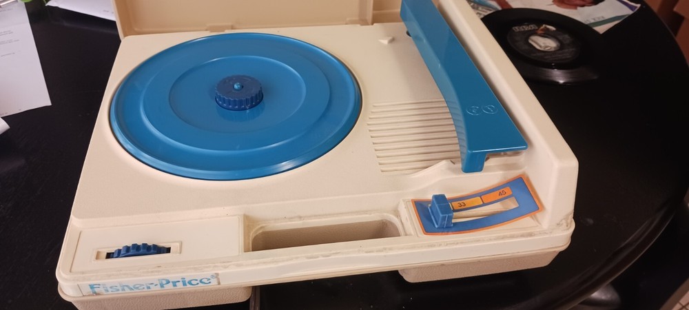 Up for sale is a vintage Fisher Price record player model #825 from 1978. This classic toy is in working condition and has been tested to ensure that it plays both 33 and 45 RPM records. It is an ideal addition to any collection of musical toys, and is recommended for ages 4-7. This Fisher Price record player is a must-have for fans of classic toys and musical gadgets alike. Player opererates and plays but I make no claims as to it being calibrated or operating as new. The record sounds good to me for a toy player but please do not expect it to compete with Non toy players. See my feedback, purchase with confidence, I will pack this collectable safely.