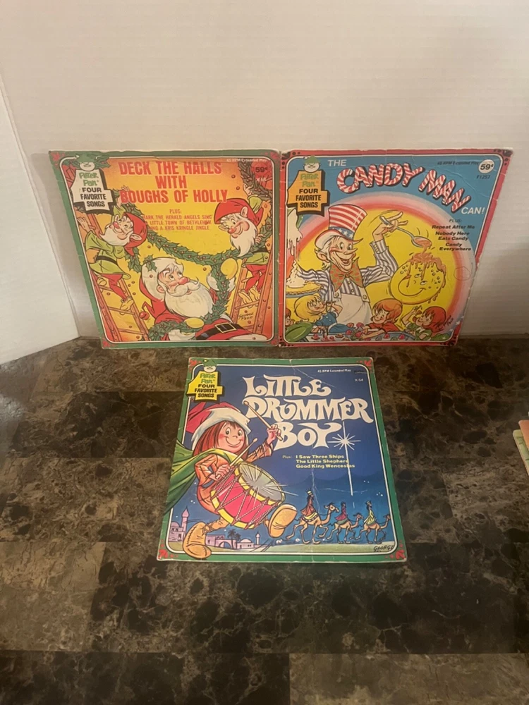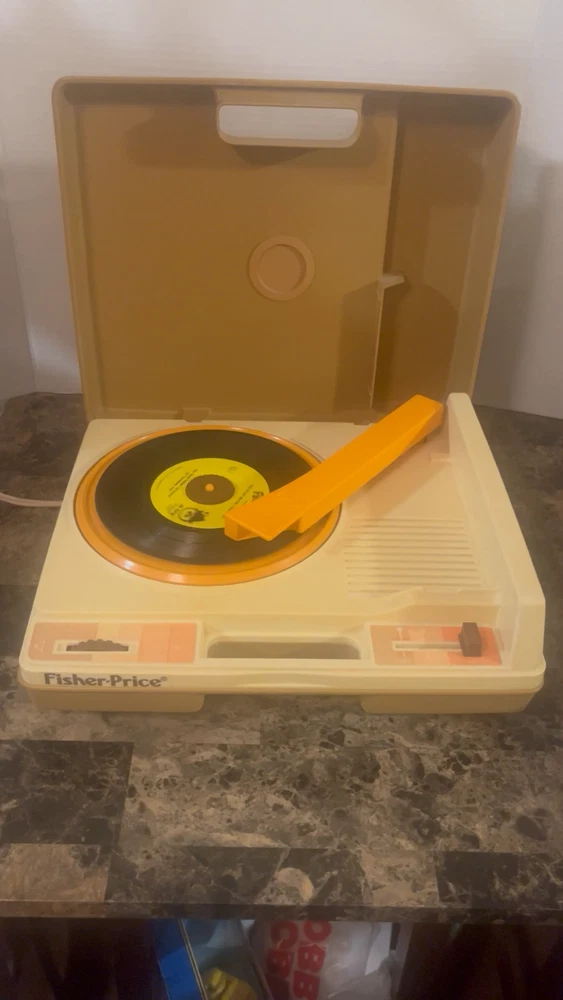 This vintage Fisher Price record player from 1978 is a must-have for any music-loving family. It has been tested and works perfectly, playing records at 33 and 45 RPM. The player is in great shape and has been well-maintained over the years. It is sure to provide hours of entertainment for kids and adults alike. The recommended age range is any, and it is a great addition to any toy collection. The player is a Fisher Price record player and belongs to the Character Family of Fisher Price. Player includes the following records: 33’s See, Hear, Read Record & books: Lady & The Tramp, Cinderella, Mickey Mouse Brave Little Tailor, Winnie the Pooh and the Honey Tree, Frosty the Snowman Little Golden Book & Record, Peter Pan & Wendy, Rudolph the Red nosed Reindeer, Goldilocks and the Three Bears, 101 Dalmatians, Snow White, The Night Before Christmas, Jingle Bells, Jungle Book. 45’s: Sesame Street Ride & Trash, Frosty, Santa Claus is Coming to Town, Rudolph the Red. Ones Reindeer, Hokey Pokey, Jingle Bells, Deck the Halls with Boughs of Holly, Little Drummer Boy, Candy Man, The Nightmare Before Christmas, I’m a little Teapot. 33’s & 45’s are all in good condition, showing wear due to age. Some do have writing in them. All have been tested and played, no scratches or skips.